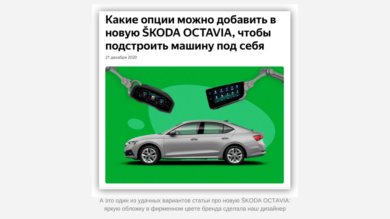 В итоге получились нативные статьи, которые развлекали пользователей и повышали их доверие к бренду ŠKODA: