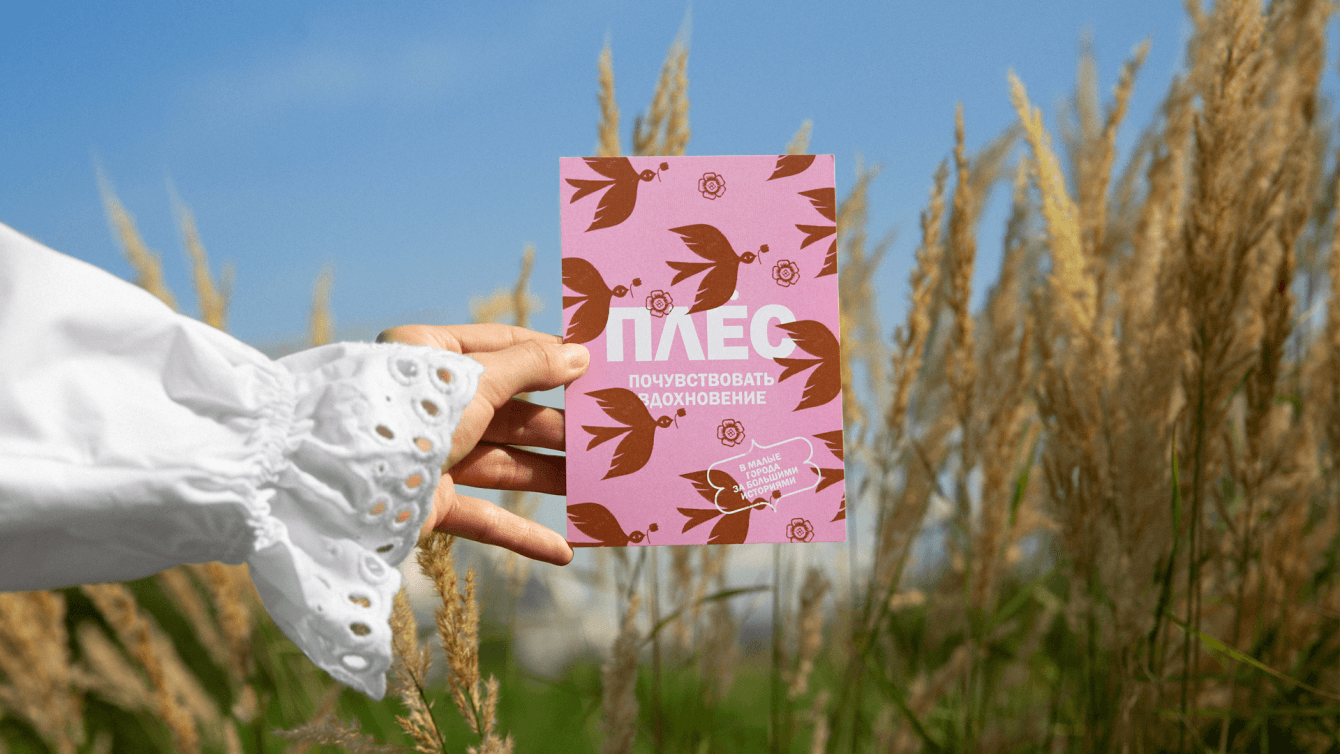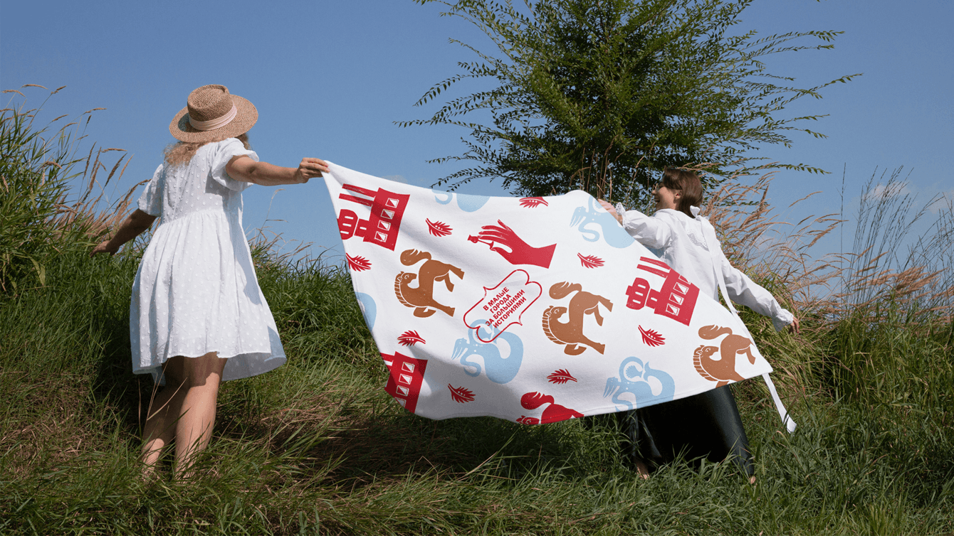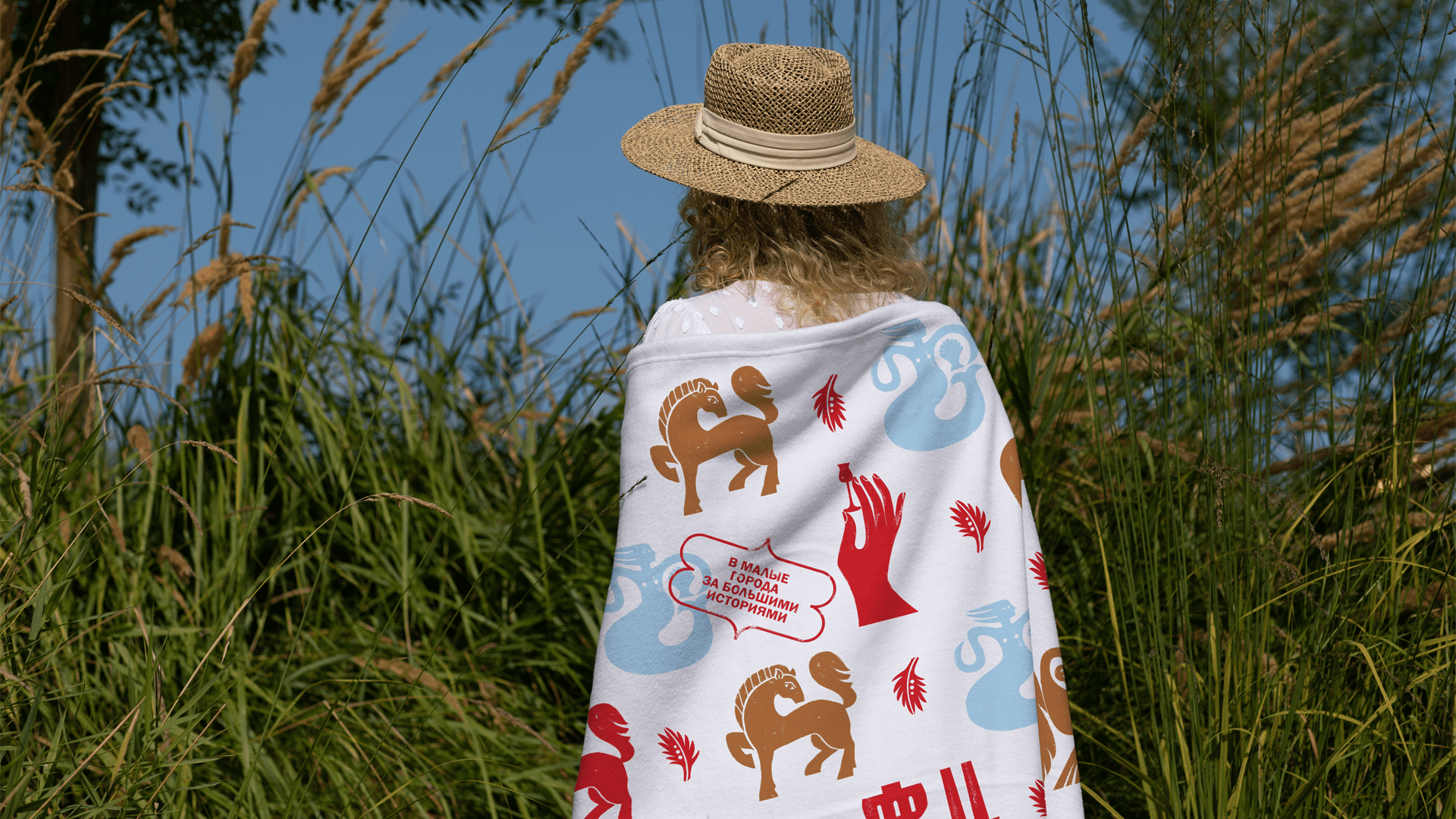 Иллюстрации дополнены стилизованными цветами с ивановского ситца и фирменной печатью «В малые города за большими историями» — как фабричные клейма, которыми маркировалась ткань. Иллюстрации на макетах повторяются, подобно набивному рисунку на ткани, и создают неповторимый и узнаваемый узор каждого города.