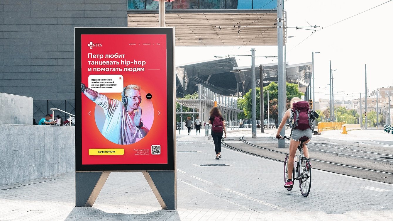 AdVita — благотворительный фонд из Санкт-Петербурга, который помогает людям с онкологическими заболеваниями. Одной из его ключевых особенностей является желание команды фонда использовать позитивные стимулы для пожертвований, а не жалость, как это распространено в данной сфере.