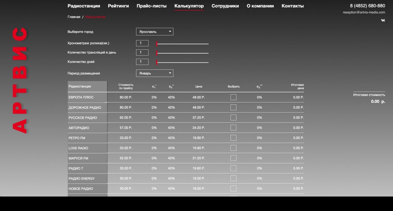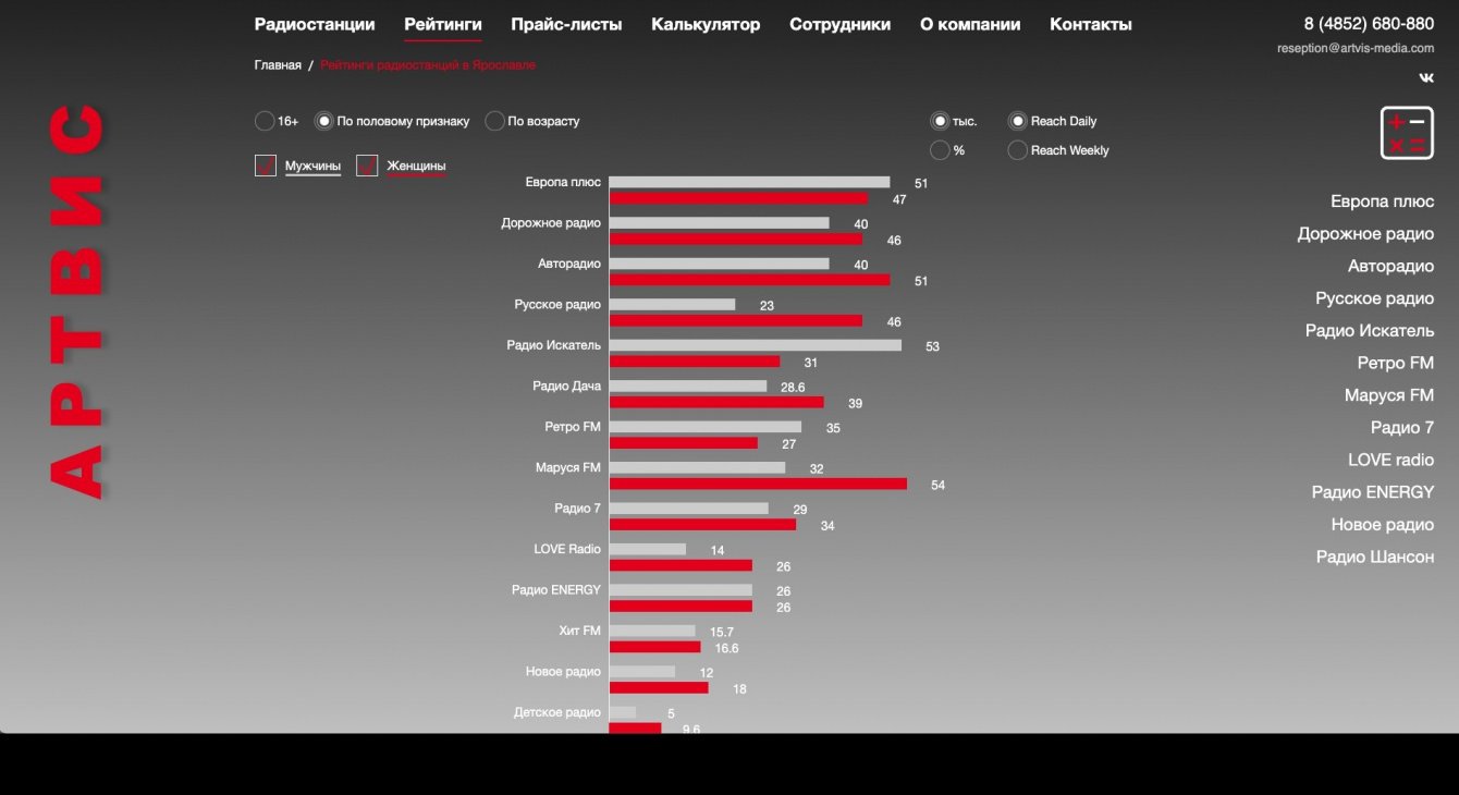 Задача: сделать редизайн сайта с новым функционалом, калькулятором стоимости рекламы, графиком рейтингов.