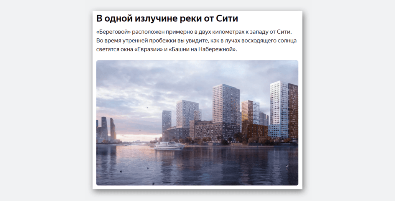 Мы не пытались продать с первого абзаца или «заманить» клиента на встречу. Мы просто и честно рассказали, что такое «Береговой» и почему в нём будет хорошо. И это сработало!