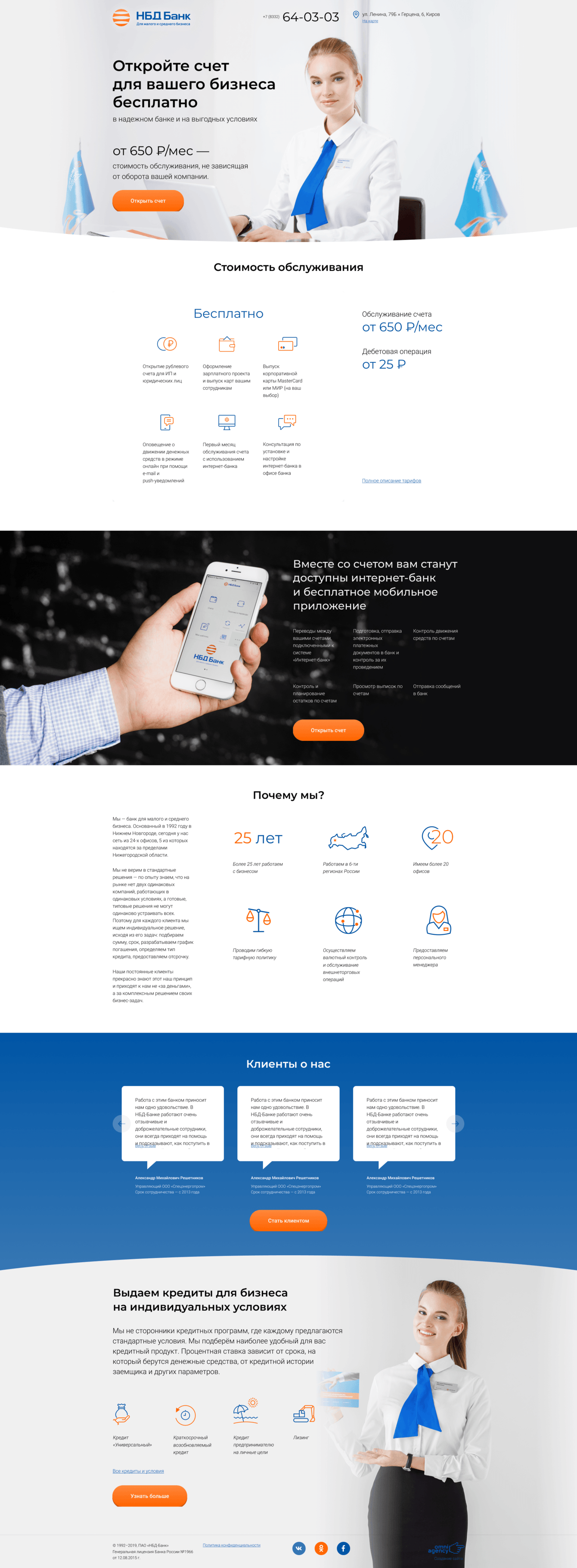 Посадочная страница для рекламы услуг НБД Банка: открытие счета в банке