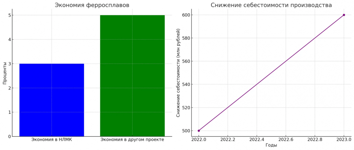 Экономия на 3-5% позволила значительно сократить затраты на ферросплавы, что в свою очередь снизило общую себестоимость производства стали.