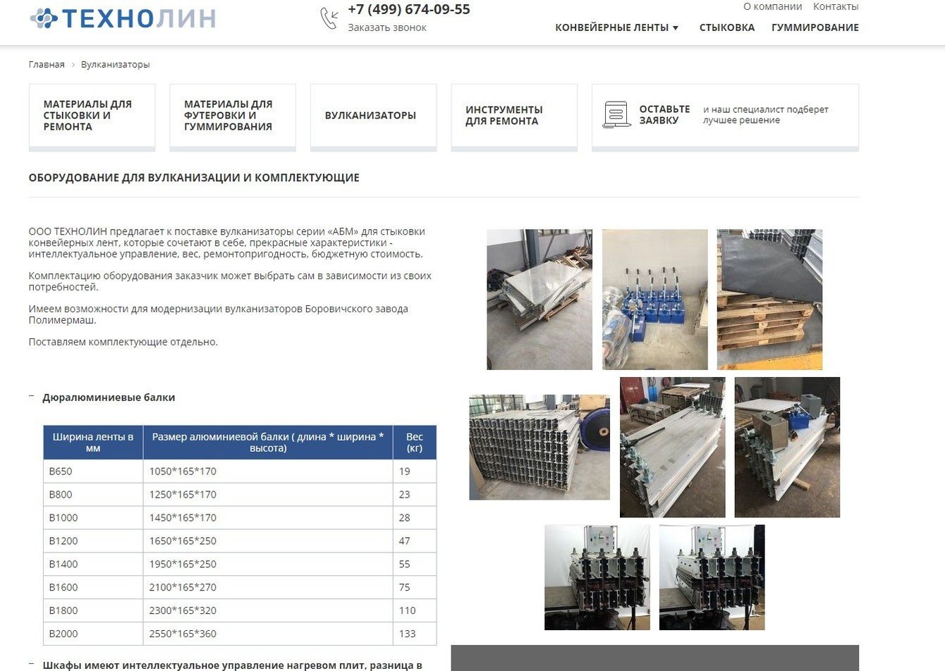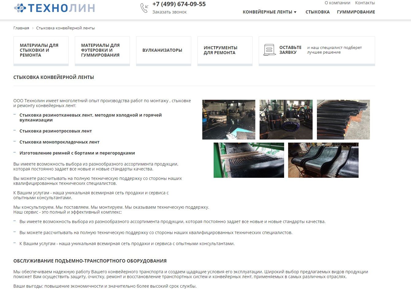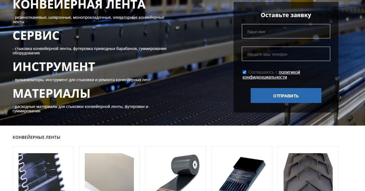 Были созданы и наполнены информационные блоки: Новости; Доставка; Контакты; Материалы акций и документов; Обрезинивание валов, роликов, колес; Гуммирование; Футеровка и гуммирование; Конвейерные ленты; Модернизация оборудования; Обучение; Контакты; Спецпредложение; Стыковка конвейерной ленты; Услуги супервайзера; Вулканизаторы; Поиск.