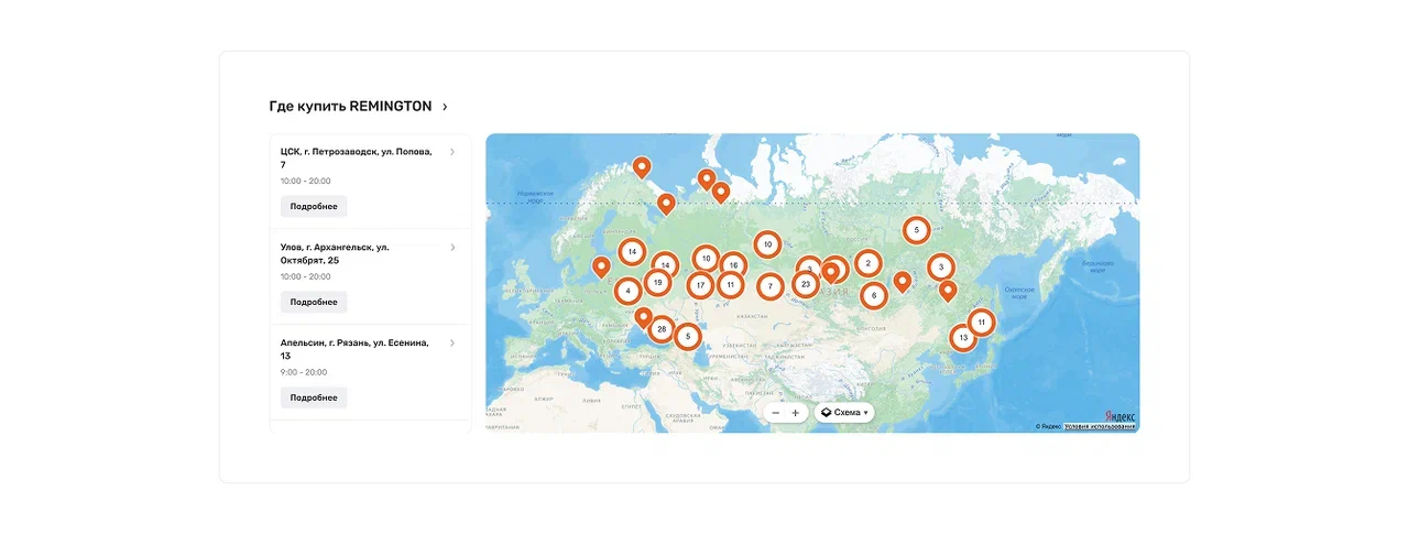 В результате работы на платформе Аспро: Премьер и 1С-Битрикс «Бизнес» Remington получил современный и удобный сайт, который стал полноценным интернет-магазином с возможностью онлайн-оплаты и доставки по всей России.