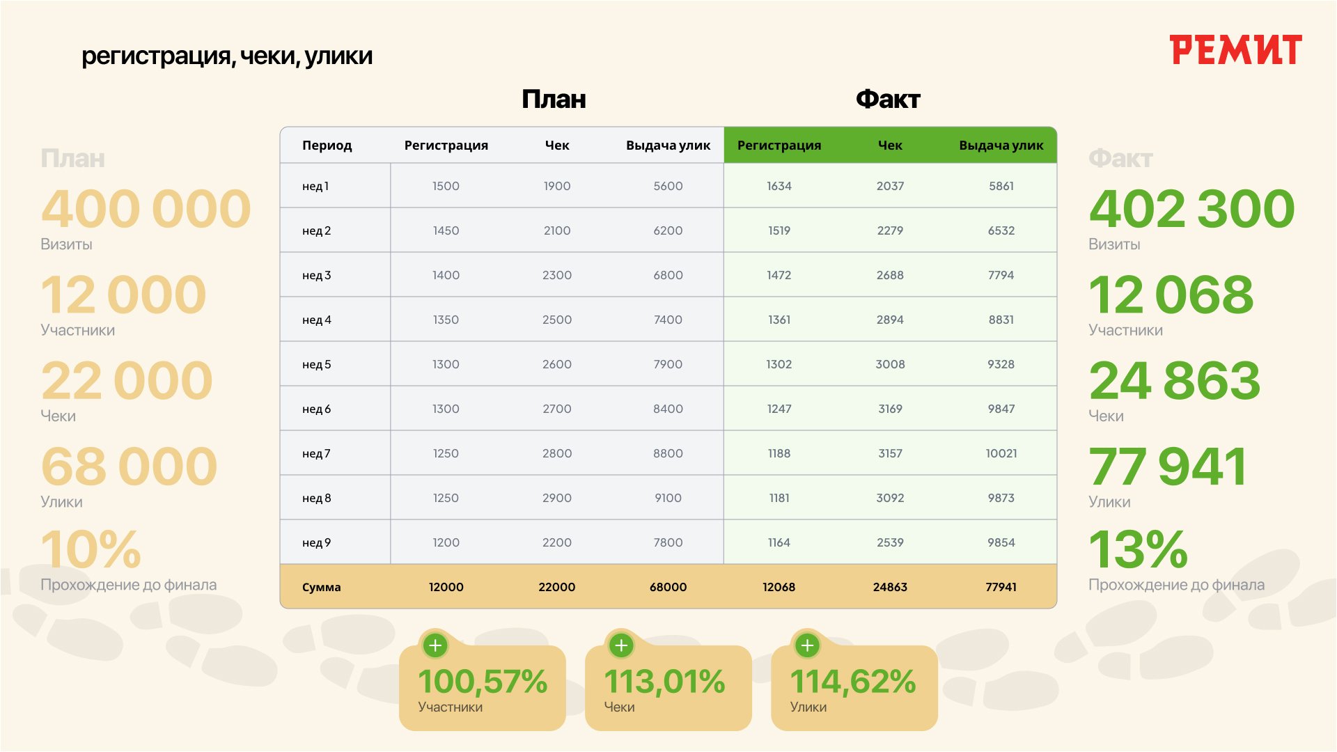 ● Промоплатформа получила ≈400 000 визитов (100% выполнение KPI)