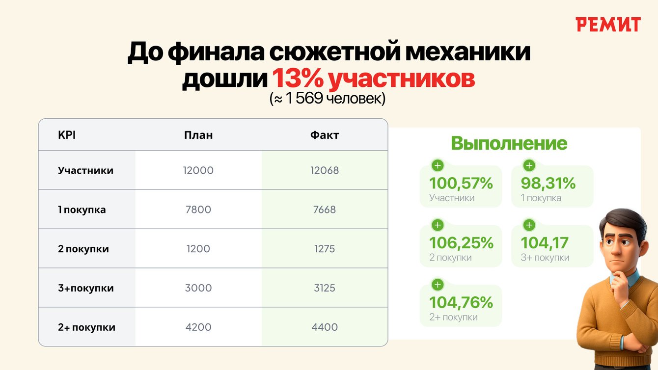 Вместо линейной модели «покупка — регистрация — ожидание» был выстроен сценарий с развитием, возвратами и финальной точкой. Механика удерживала интерес между покупками и работала как единая система, а не набор разрозненных шагов.