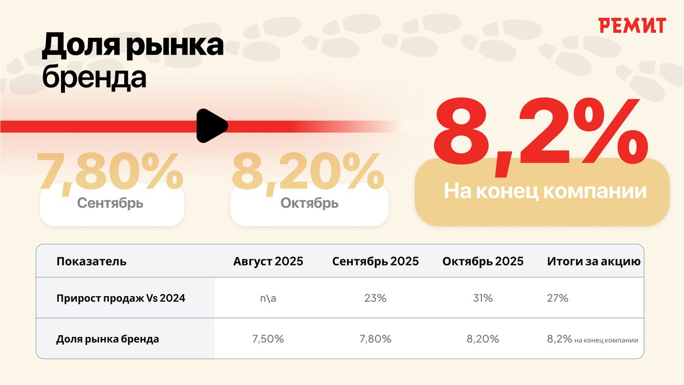 ● Доля бренда увеличилась с 7,5% до 8,2% за 2 месяца (+0,7 п.п.).
