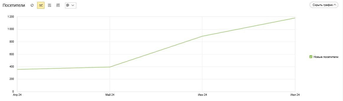 Удалось обнаружить и устранить вирус и другие технические проблемы, мешавшие продвижению. После этого сайт начал демонстрировать уверенный рост новых посетителей, который произошел на 230%.