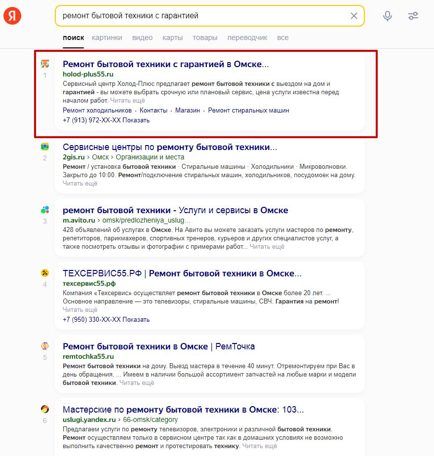 Удалось выйти в ТОП-10 по многим ключевым запросам: