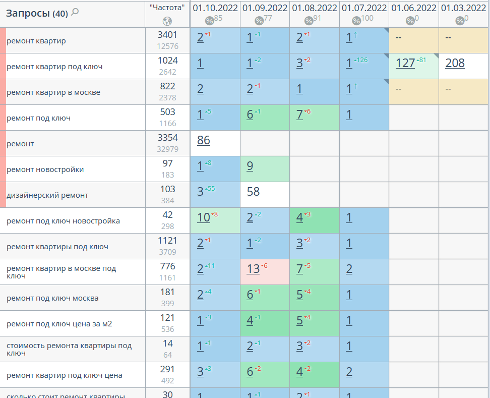 2. Взяли в продвижение самые конкурентные запросы из топ-30 Яндекса.