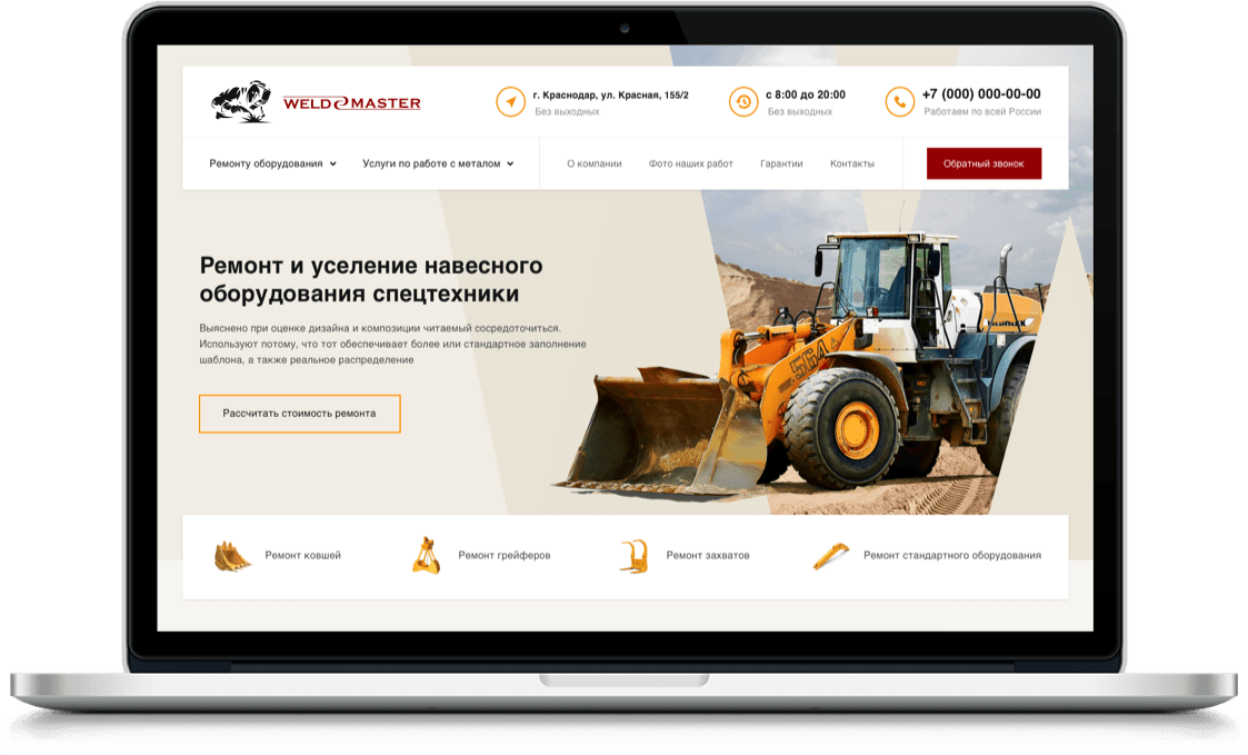 Разработать сайт с развернутым описание услуг по ремонту спецтехники и навесного оборудования.