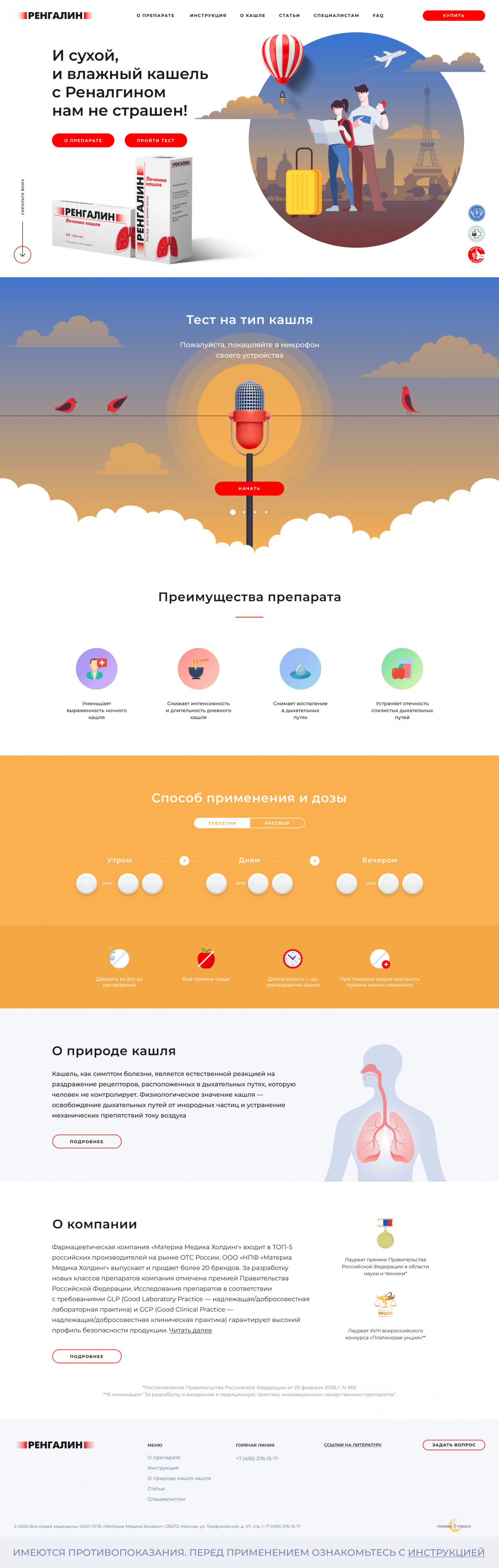 В рамках создания концепции сайта мы реализовали дополнительные интерактивные элементы (такие как тест на тип кашля), что бы у пользователей была большая мотивация провести дополнительное время на сайте и лучше познакомится с препаратом.