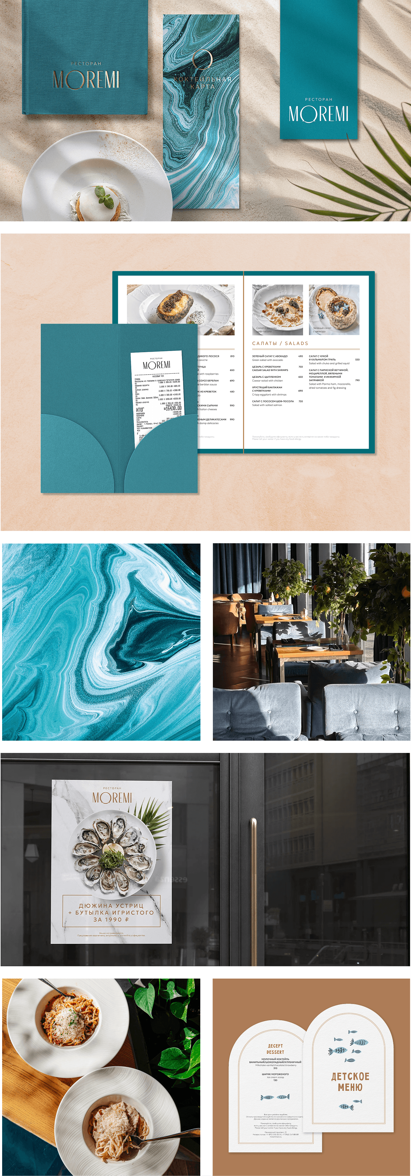 Главная роль отведена печатным материалам — именно бумага, фактура и тиснение передают ту самую «спокойную роскошь», которая делает MoReMi уютным, а не пафосным.