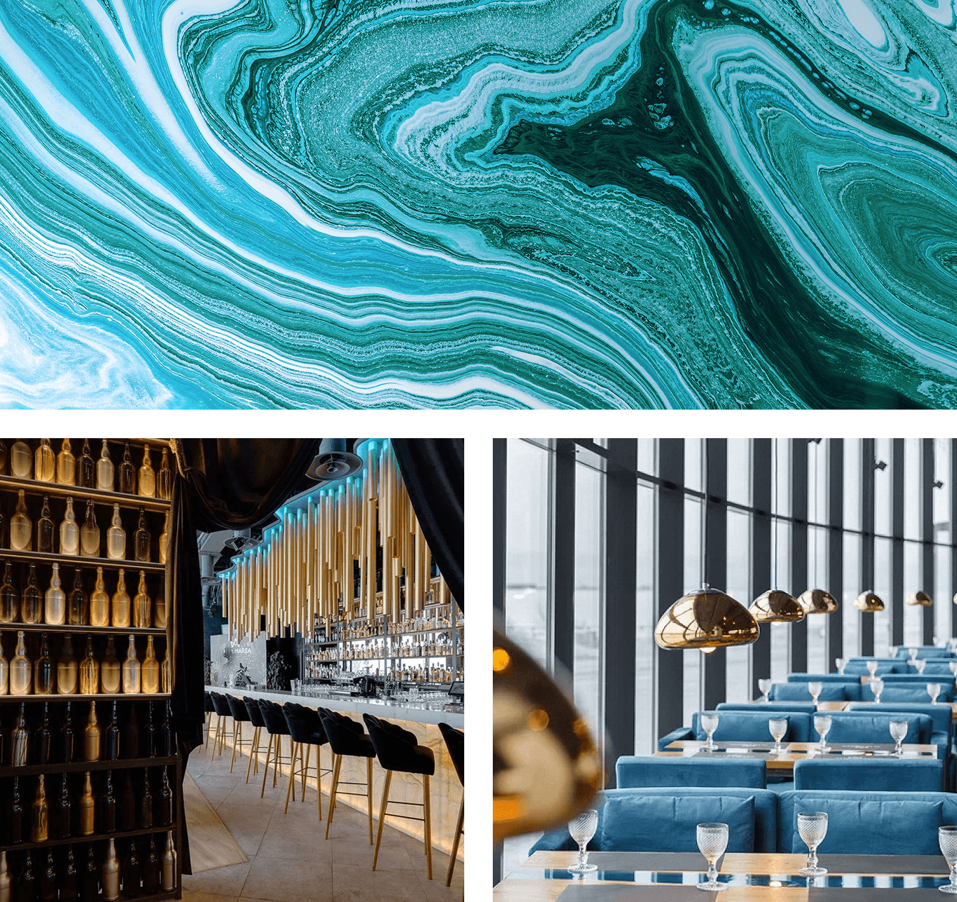 Графика — набор текстур разной плотности: камень, минералы, абстрактные волны. Они формируют ощущение природного рисунка, который можно свободно миксовать в меню, афишах и носителях.
