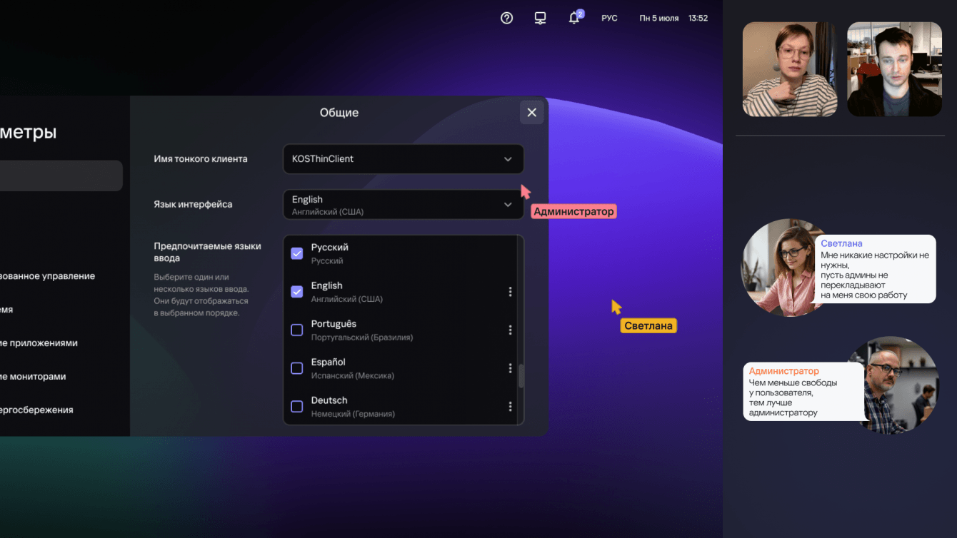 Задача требовала комплексного подхода к проектированию UX/UI и тщательной проработки деталей. Итоговое решение должно было не только соответствовать функциональным требованиям, но и обеспечивать передовой опыт взаимодействия пользователей с тонкими клиентами.