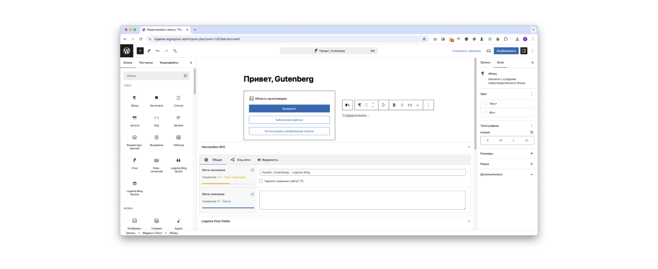 Конечно, можно было использовать Filament или внедрить TinyMCE/CKEditor – но все эти решения в бесплатной версии имеют существенное количество ограничений. В последние несколько лет создатели WordPress проделали серьезную работу над редактором Gutenberg, который обладает обширным функционалом, открыт для разработчиков и хорошо выглядит для контент-менеджеров. К тому же, он очень похож на полюбившийся многим Notion — так что у контент-менеджеров не будет проблем с освоением этого редактора. ❜❜
