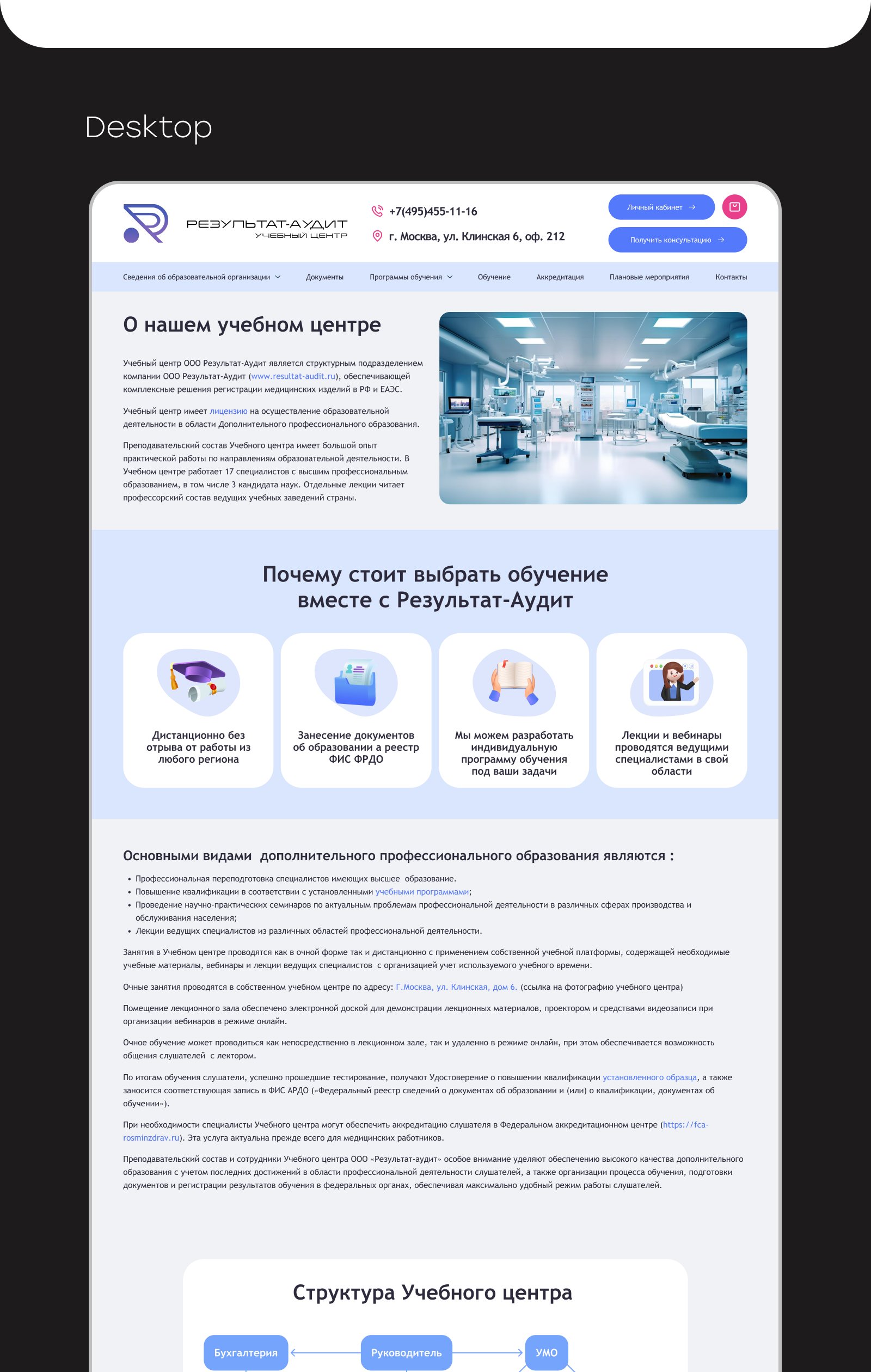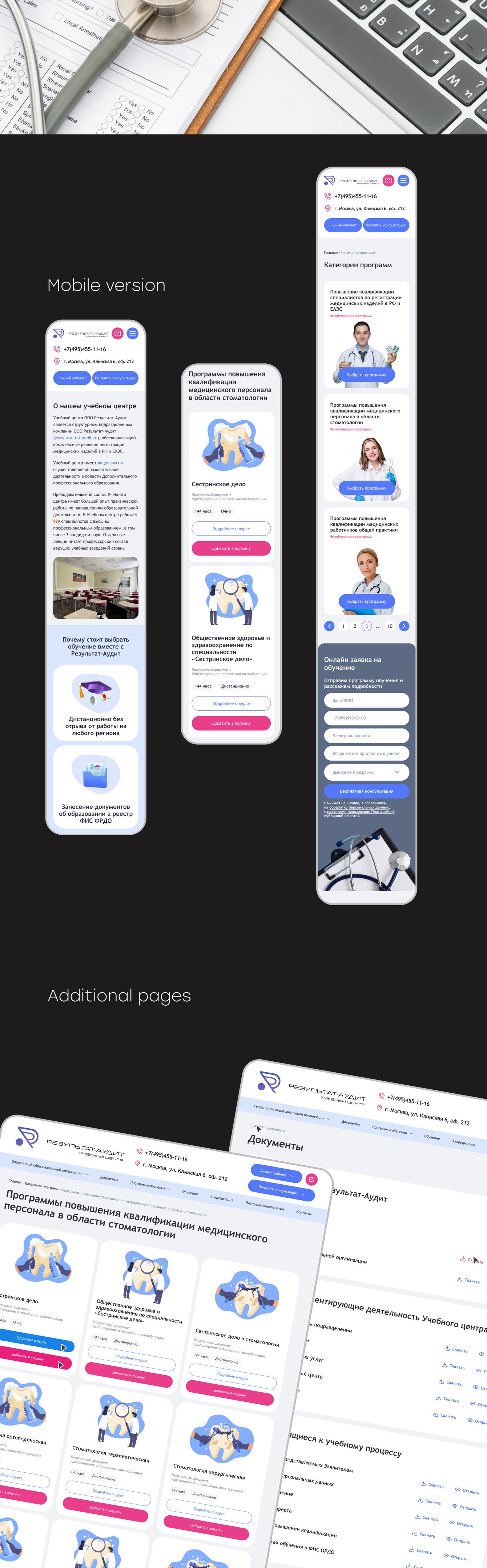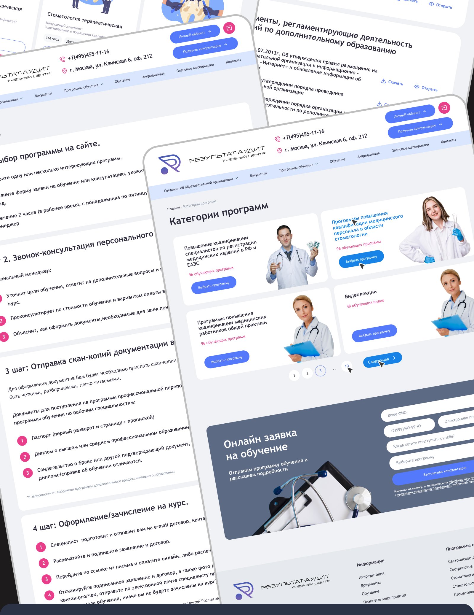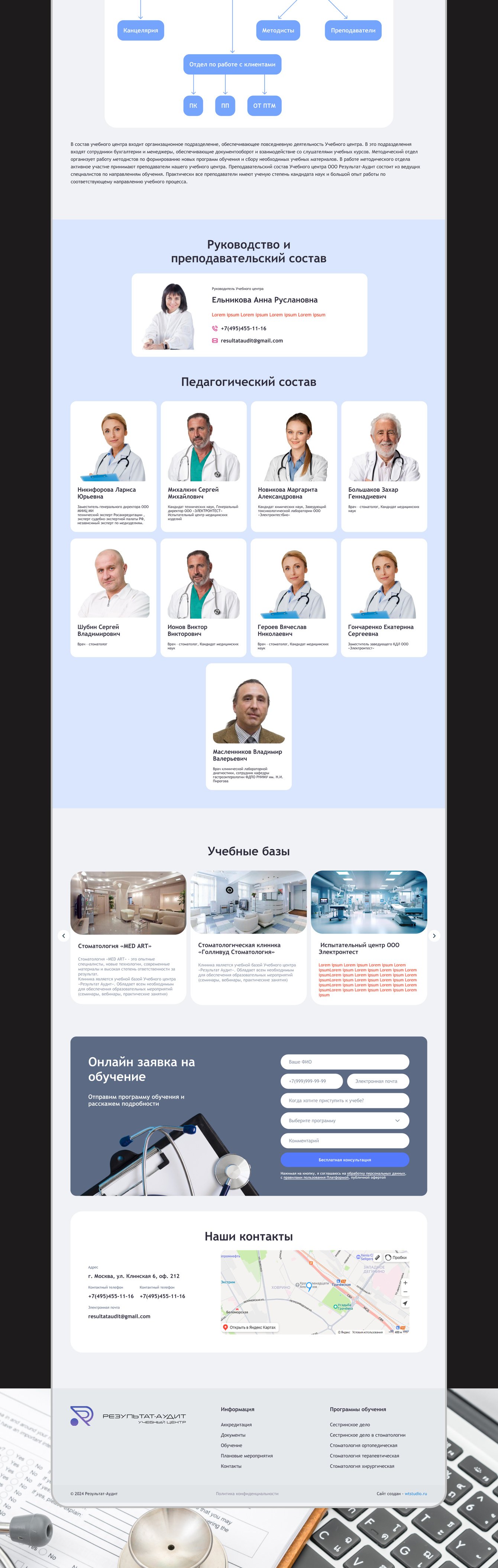 Долго вели переговоры с заказчиком, на тему интеграции с учебной платформой, так как ispring не могла по api предоставить все, чтобы получить максимум от сайта, а именно - интеграция самого прохождения курса на наш сайт. Решено было делать платформу с переходом в курс с личного кабинета нашего сайта. Разработали дизайн по вкусу заказчика, реализовали верстку и приступили к программированию. На этапе программирования, разработали личный кабинет, где вывели курсы клиента. При регистрации, клиент регистрируется сразу как на нашем сайте, так и на образовательной платформе одновременно, тем самым у него всегда одинаковый пароль и логин. При редактировании личных данных, мы изменяем их сразу на учебной платформе. Так же реализовали подтвержденные аккаунты и не подтвержденные, с помощью загрузки необходимых документов для прохождения курса в личном кабинете.