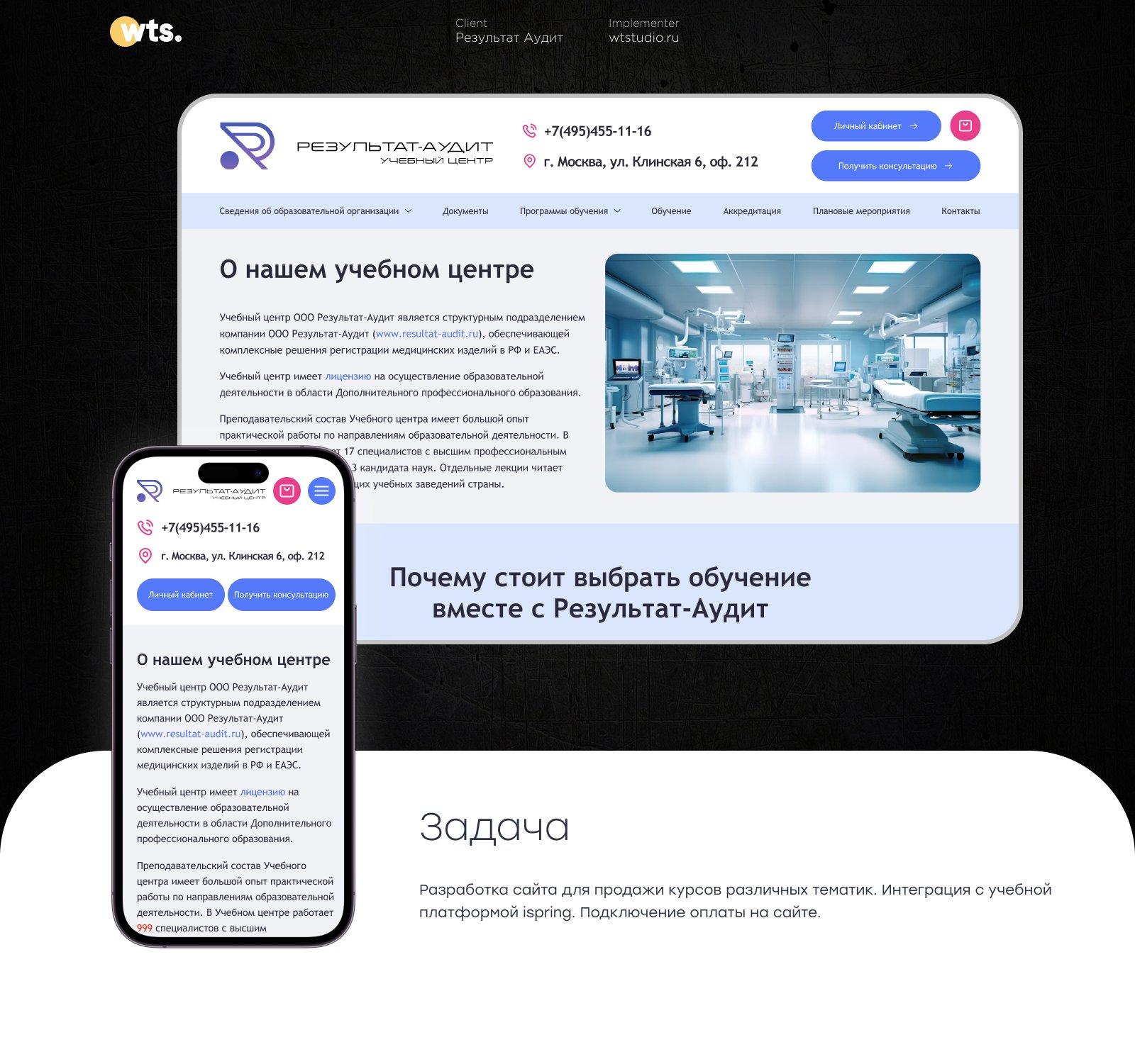 Разработка сайта для продажи курсов различных тематик. Интеграция с учебной платформой ispring. Подключение оплаты на сайте.