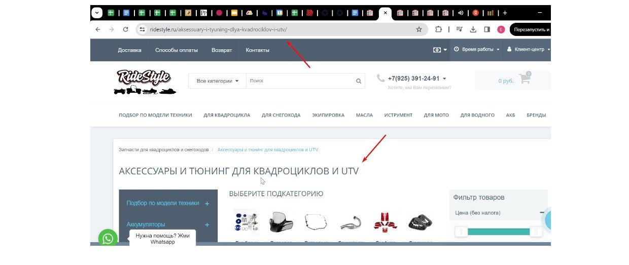 2. Есть проблемы с наполняемостью сайта: запчастей очень много, а готового решения нет. Ниша запчастей для квадроциклов очень узкая, единого каталога нет. Поэтому приходится наполнять сайт вручную — выбирать ассортимент из прайсов производителей. Стоит отметить, что запчасти бывают редкие, специфические, привезти какую-то запчасть бывает значительно дороже, чем продать ее.