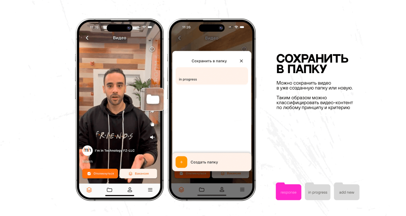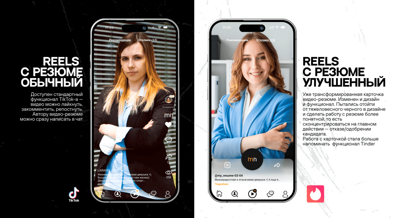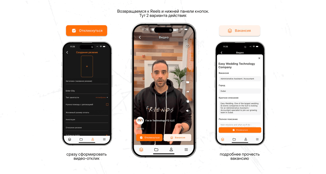 «Была задумка создать аналог TikTok-а. Если ты соискатель, ты регистрируешься и записываешь короткие видео о себе, карьере, опыте и профессиональных навыках. После просто ждешь приглашение на собеседование. Если ты рекрутер, ты регистрируешься и ищешь подходящего кандидата. Разговорный видео-контент дает возможность оценить английский соискателей еще до собеседования».