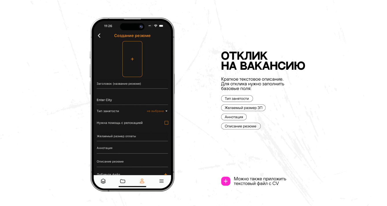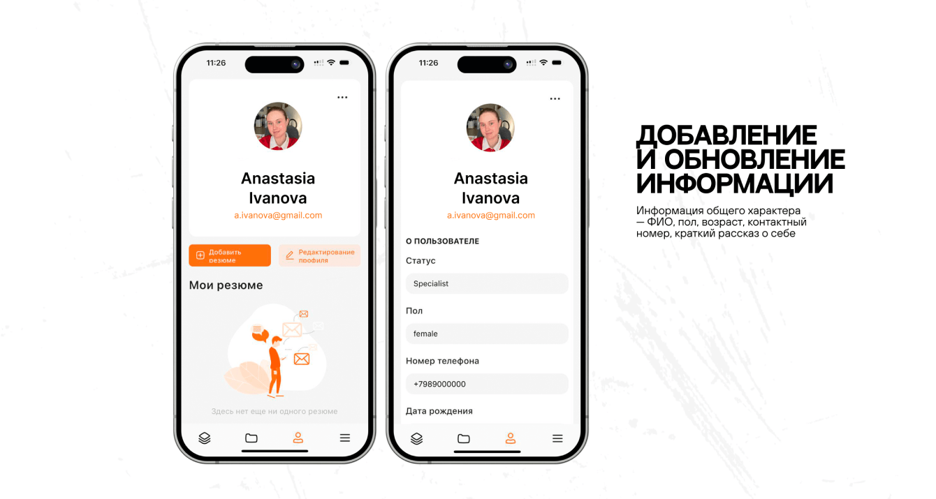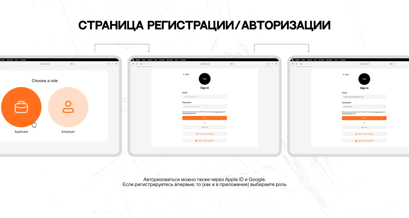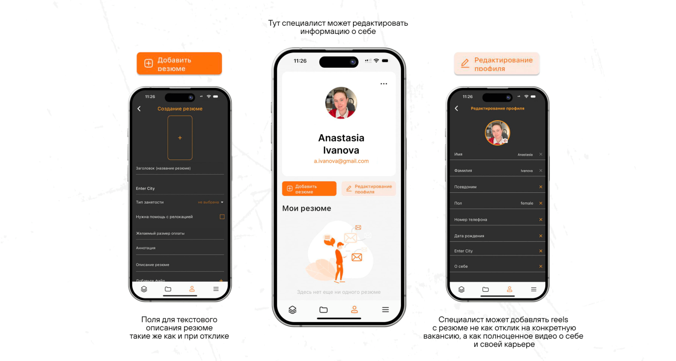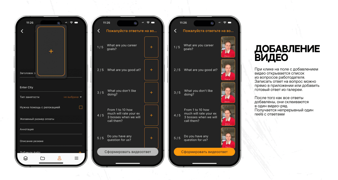 Разберемся подробнее, как теперь стало работать и выглядеть приложение. Пройдем весь путь соискателя от регистрации до загрузки первого видео-резюме.