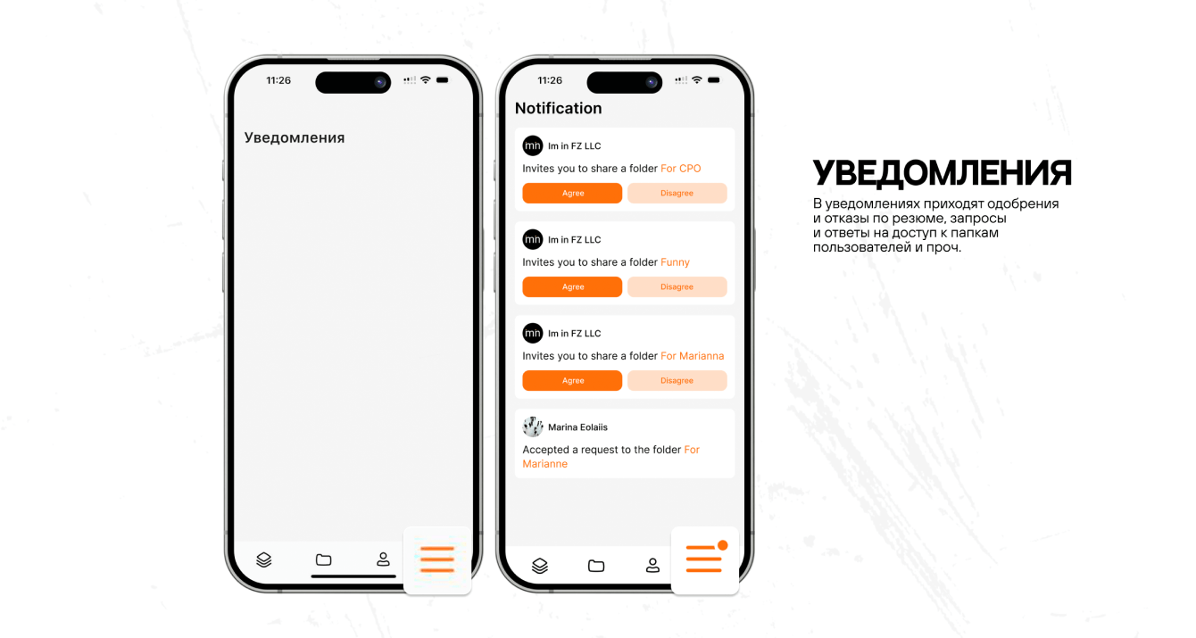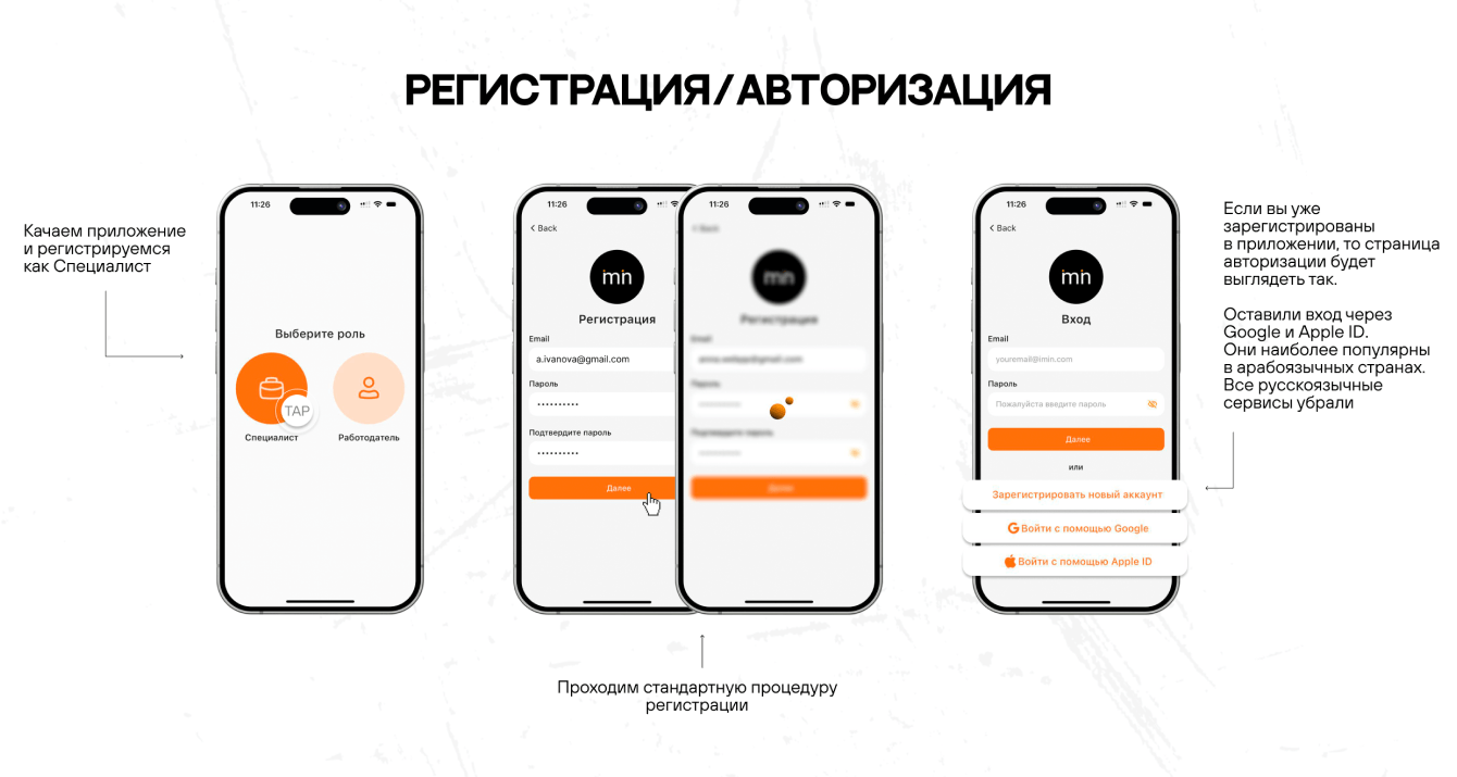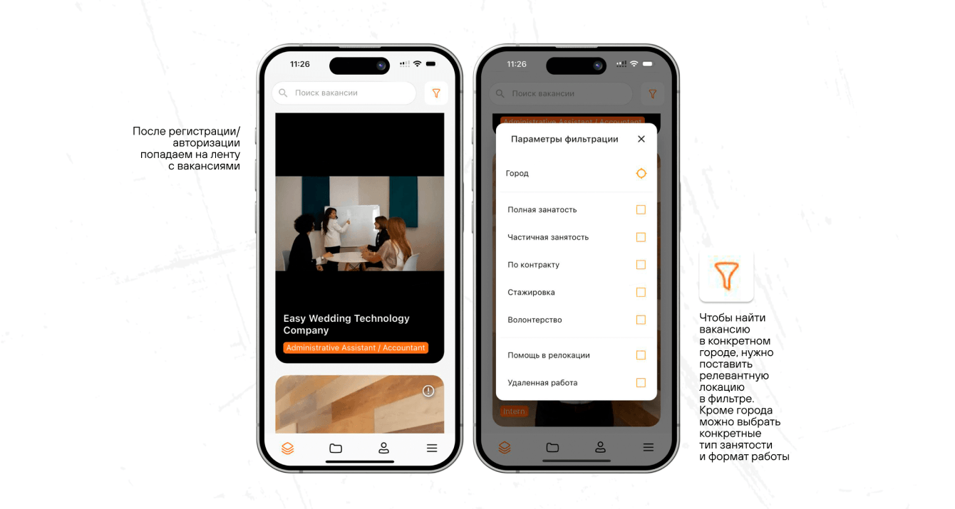 Сервис задумывался как социальная сеть. Хотели привлекать в первую очередь соискателей в приложение. Уже после клиент хотел популяризировать приложение внутри бизнеса: среди рекрутских организаций и ih-house hr-ов.