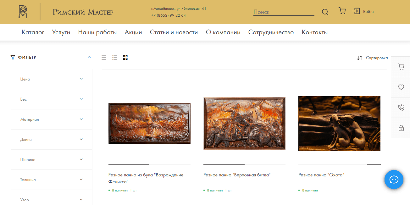 "Римский мастер" - компания, занимающаяся производством изделия из дерева и металла: от монументального арт-объекта до фигурки любимого животного или резной копии картины да Винчи.