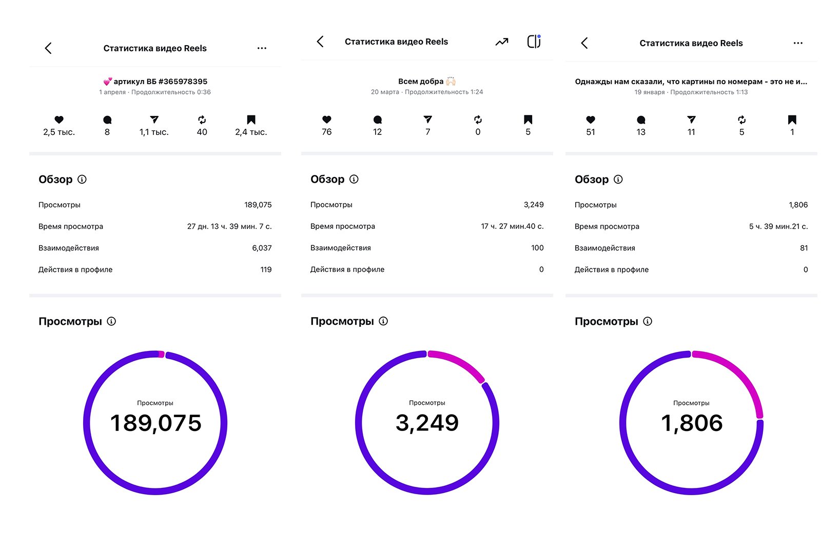 Все фото и видео, которые сейчас есть в профиле, я снимала сама. Некоторые изображения брала из отзывов наших покупателей. Это помогло сделать аккаунт более "живым" и передать эмоции от рисования и атмосферу творчества; повысило индивидуальность профиля и узнаваемость бренда.