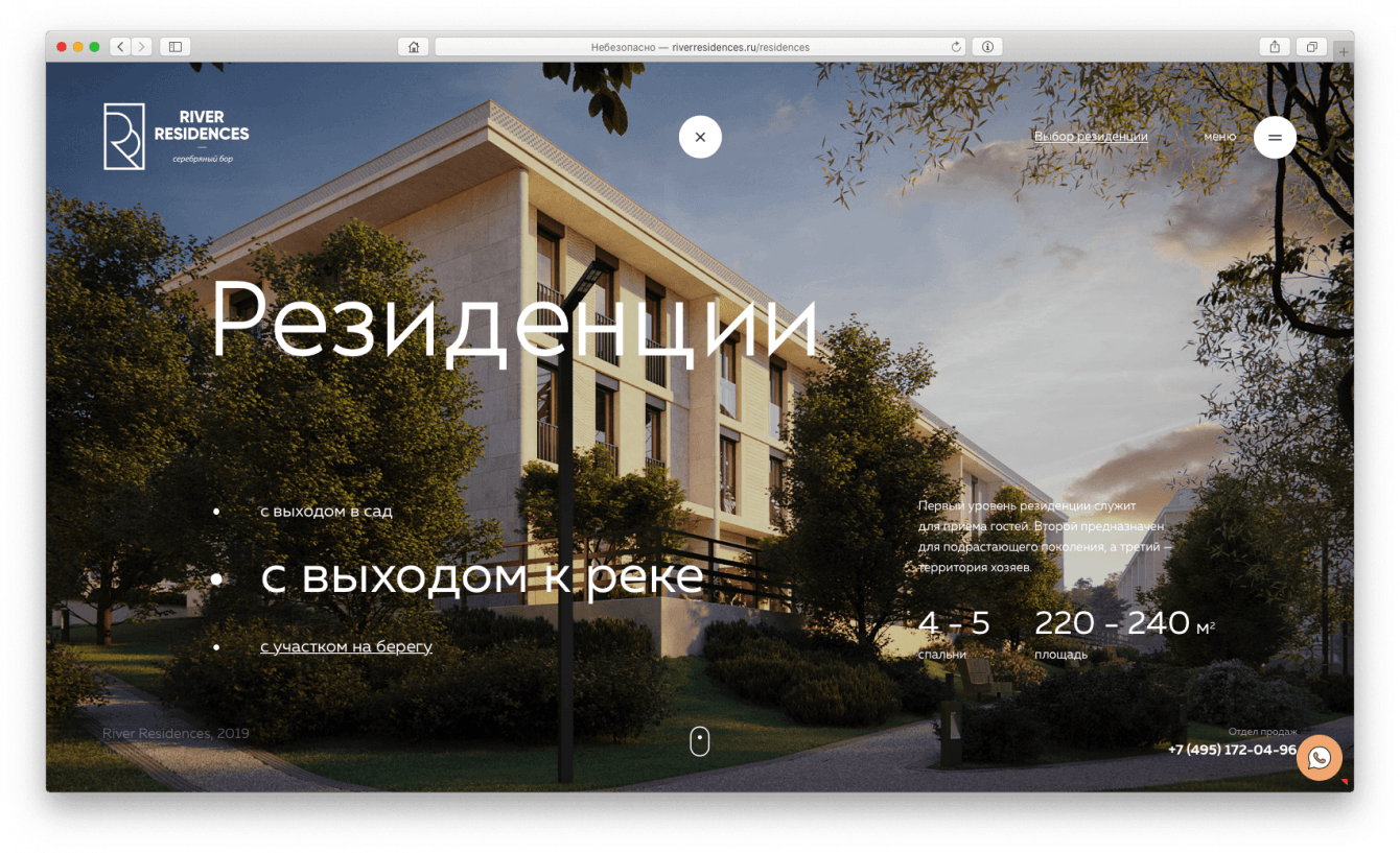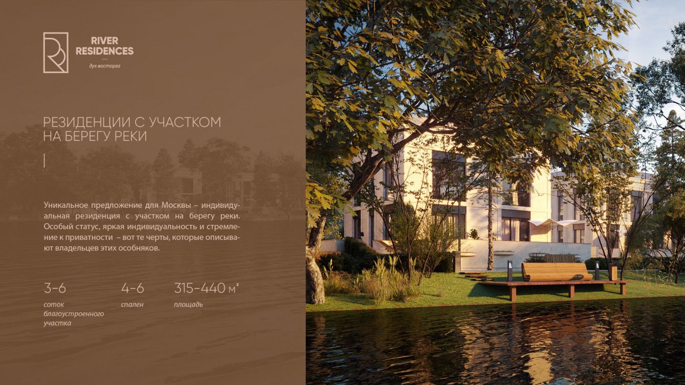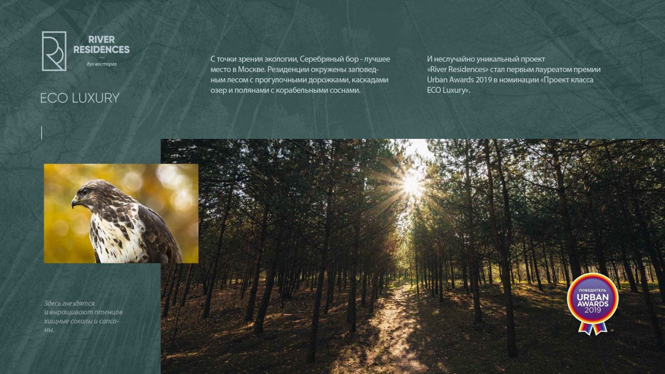 Клубные Резиденции «River Residences» — единственный в Москве комплекс «eco luxury» класса. Он расположен в Серебряном Бору, на берегу Москвы-реки.