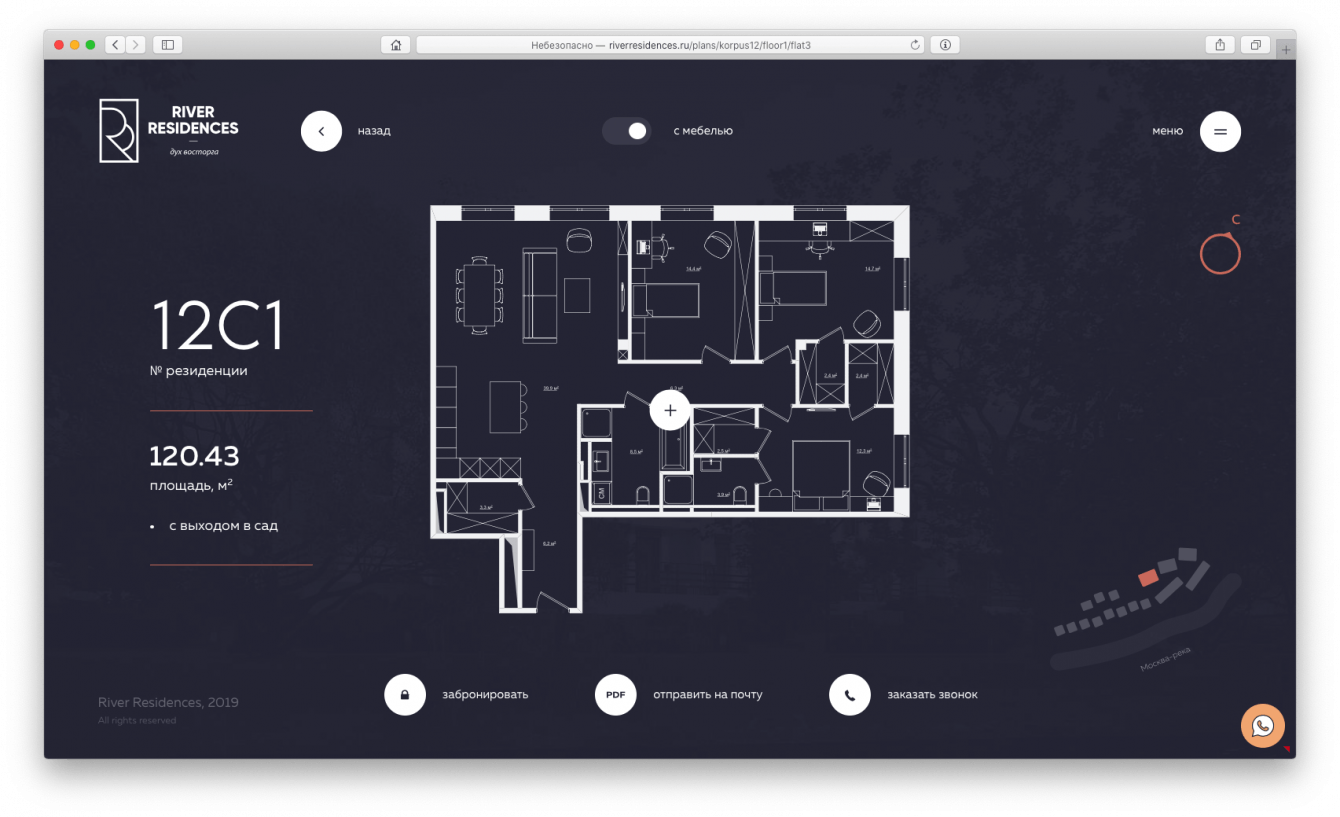 Провели работу по 3D-проектированию (благоустройство, элементы архитектуры, набережной) и окружающей территории, а также разработали все необходимые для старта продаж материалы: детальную 3D-модель проекта и продающие дневные и вечерние 3D-визуализации, разработали креативную концепцию и веб-сайт, включая мобильную версию, придумали сценарий и сделали архитектурный фильм-настроение по проекту, создав ощущение элитного продукта.