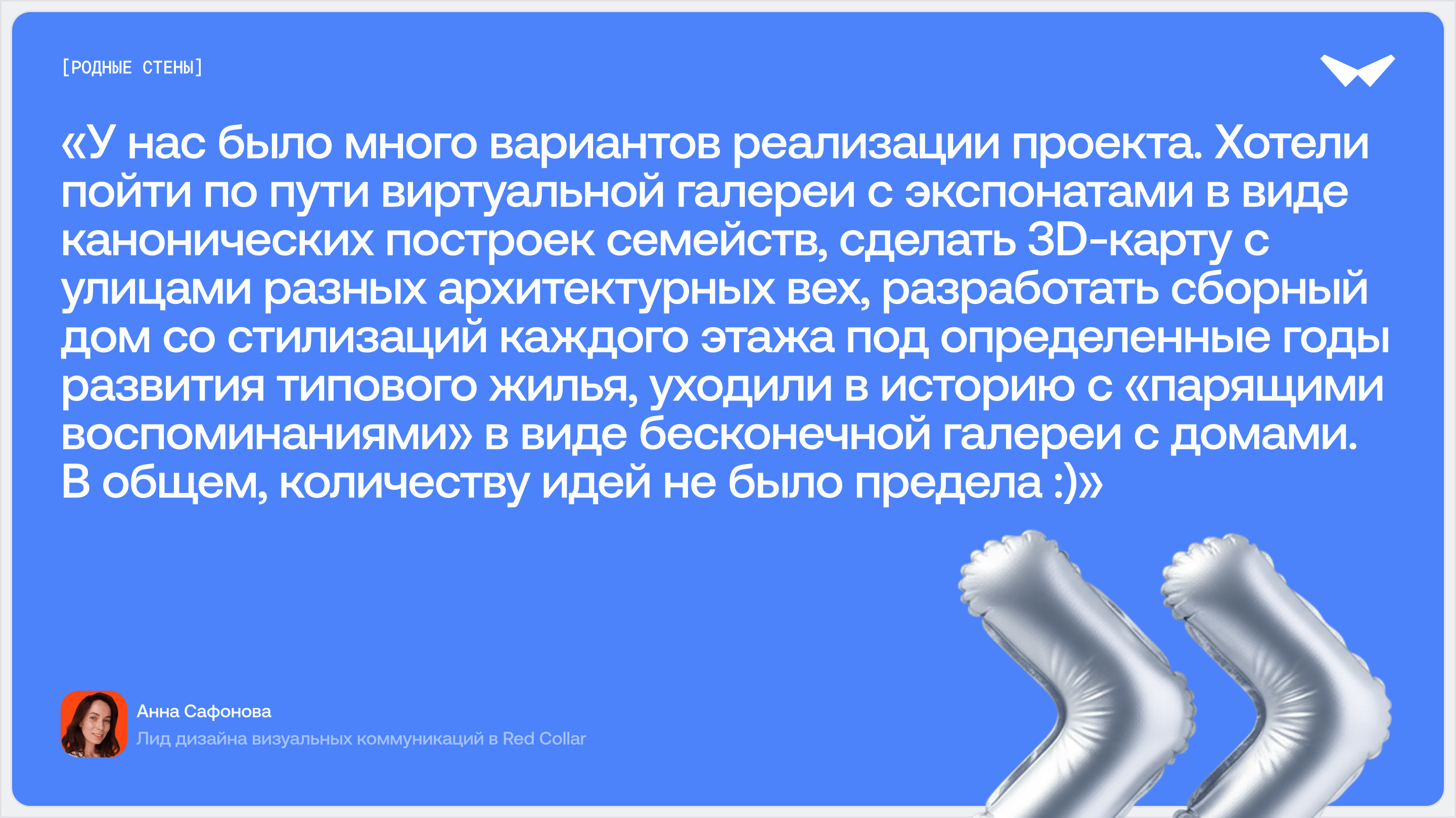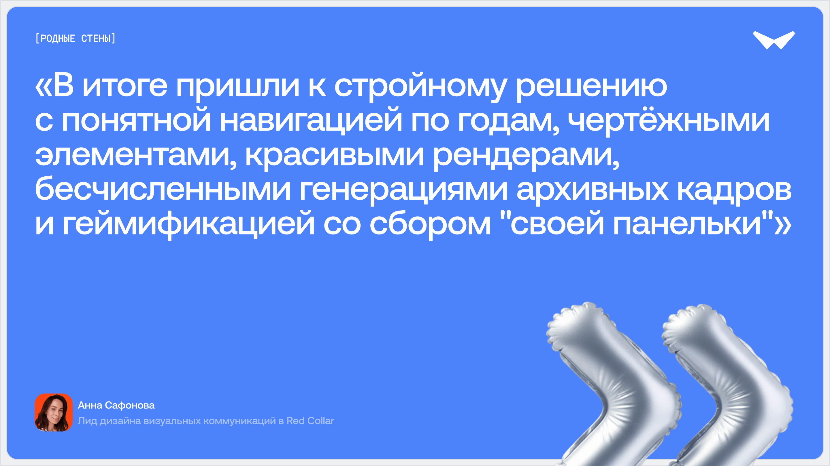 Получившийся лендинг стал центральной частью спецпроекта «Родные стены» и отлично справился с задачей — рассказать историю о типовой архитектуре интересно и увлекательно».