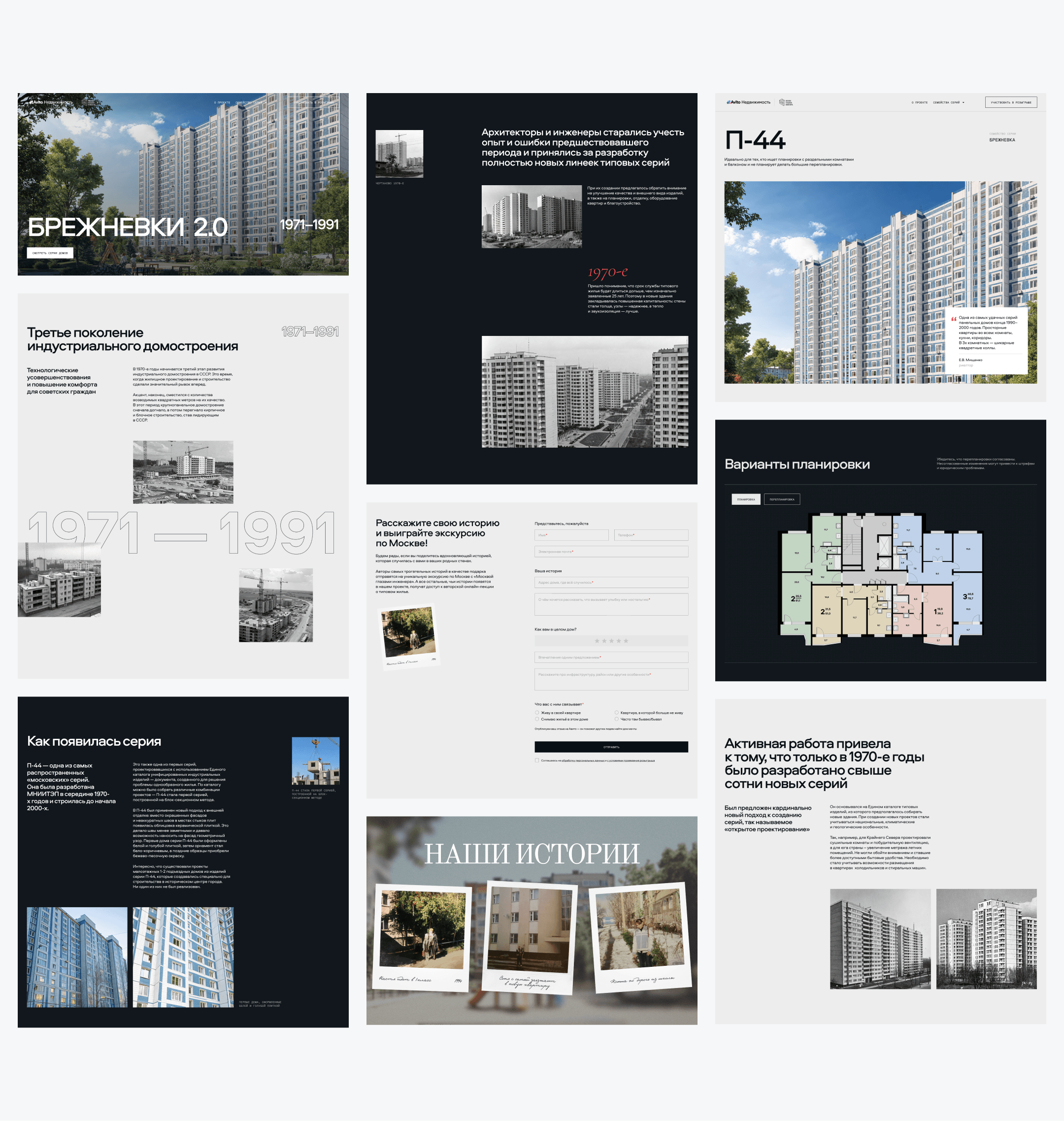 Вторичная недвижимость (сталинки, брежневки, панельки) — часть культуры для жителей России и СНГ. При этом у «вторички» нет маркетинговой поддержки, которая есть у современных застройщиков. Лендинг становится рупором для истории типичной архитектуры и делает архивную информацию доступной широкой аудитории.