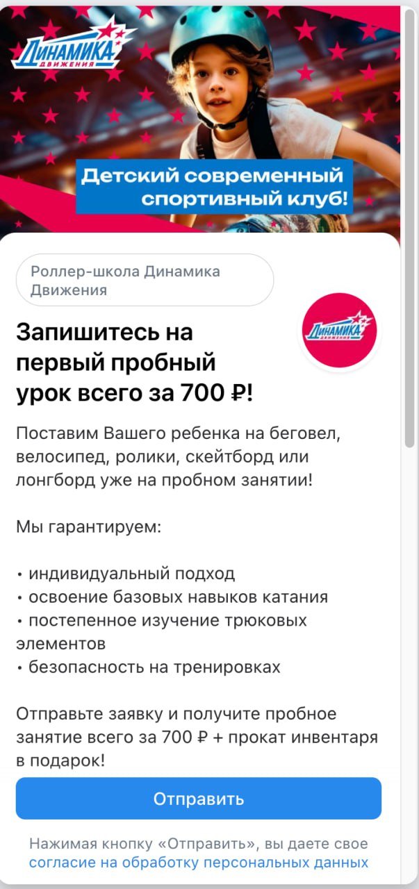 По итогам рекламной кампании мы смогли значительно увеличить количество запросов на обучение в роллер-школе.