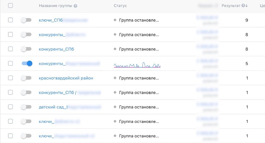 Нами было протестировано более 10 видов аудитории. Самыми результативными оказались группы по подписчикам конкурентов и по ключевым словам.