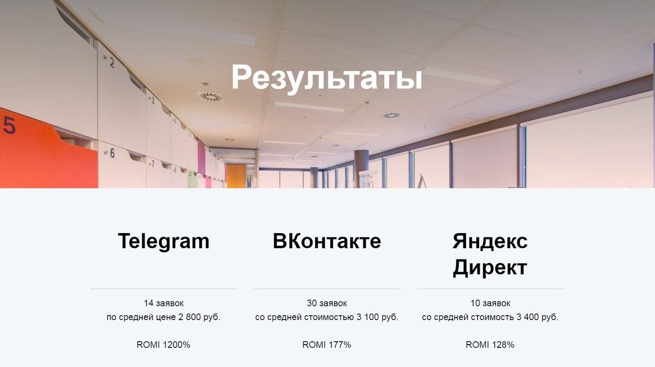 В рамках каждого сегмента аудитории создали несколько креативов, чтобы точечно работать с каждой конкретной аудиторией. Кому-то нужен большой комфортный офис, а для кого важно снять офис по невысокой цене.