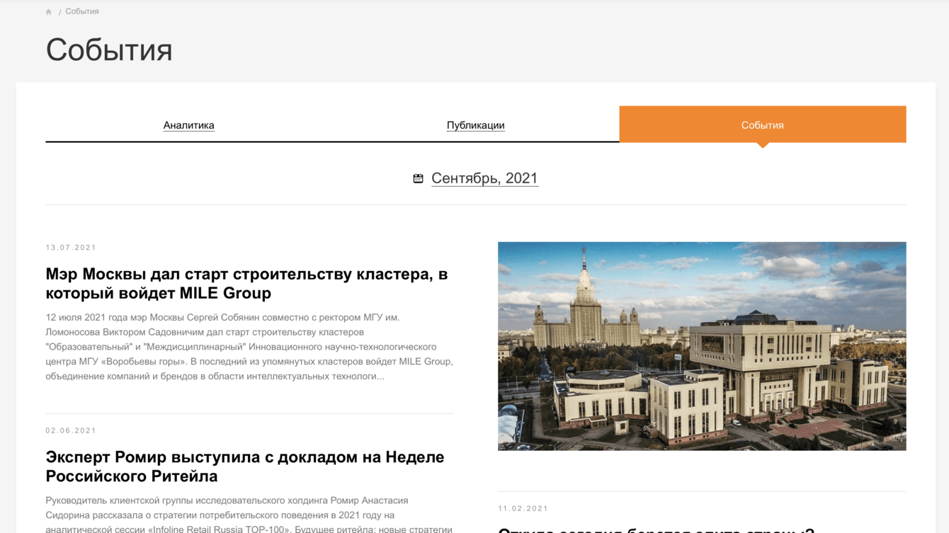 Обновление корпоративного портала одного из крупнейших исследовательских холдингов.