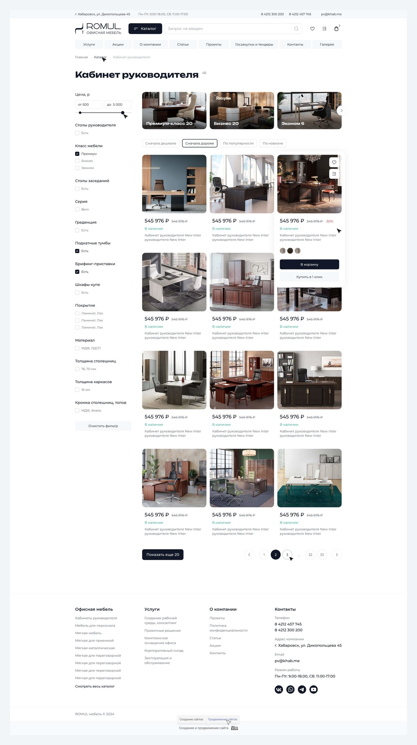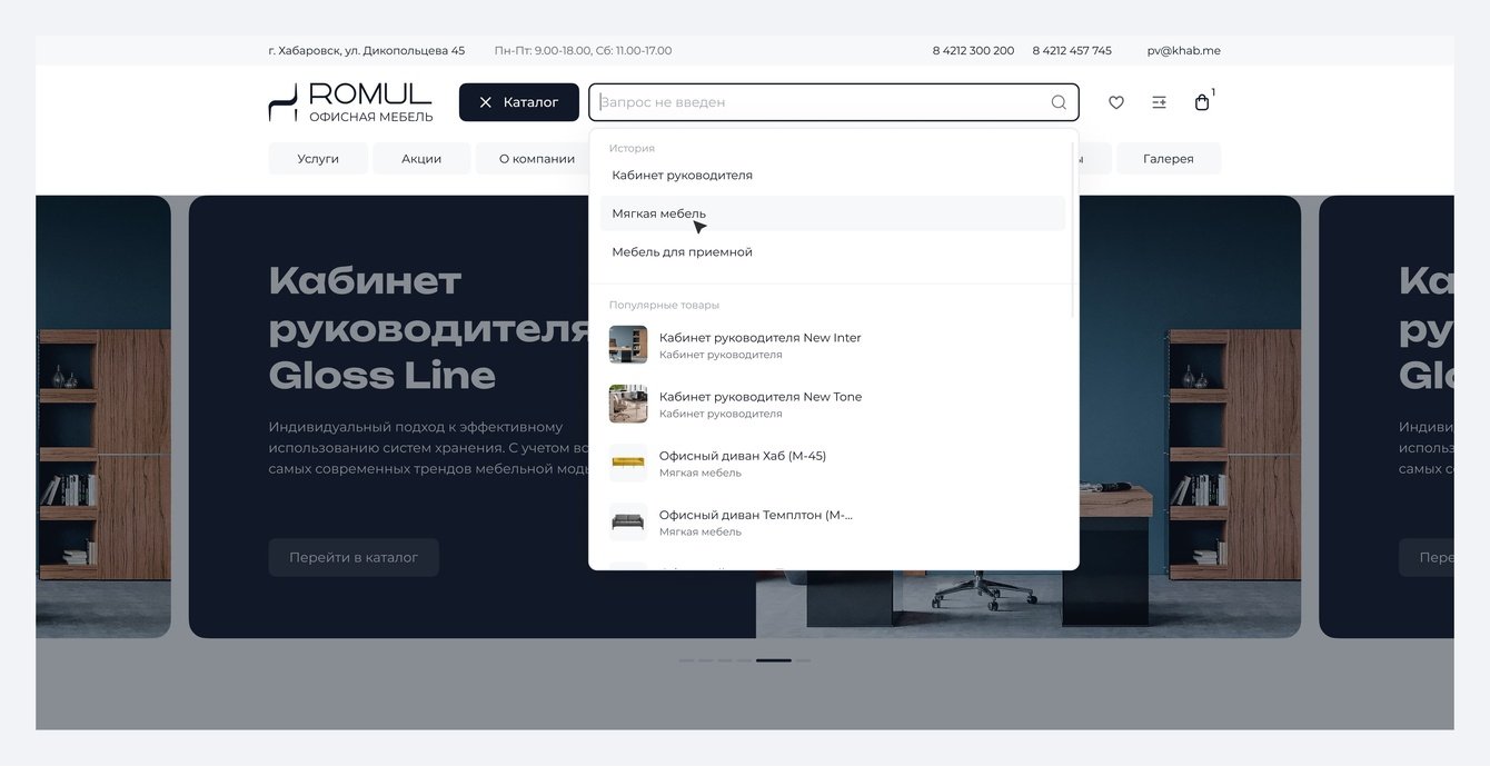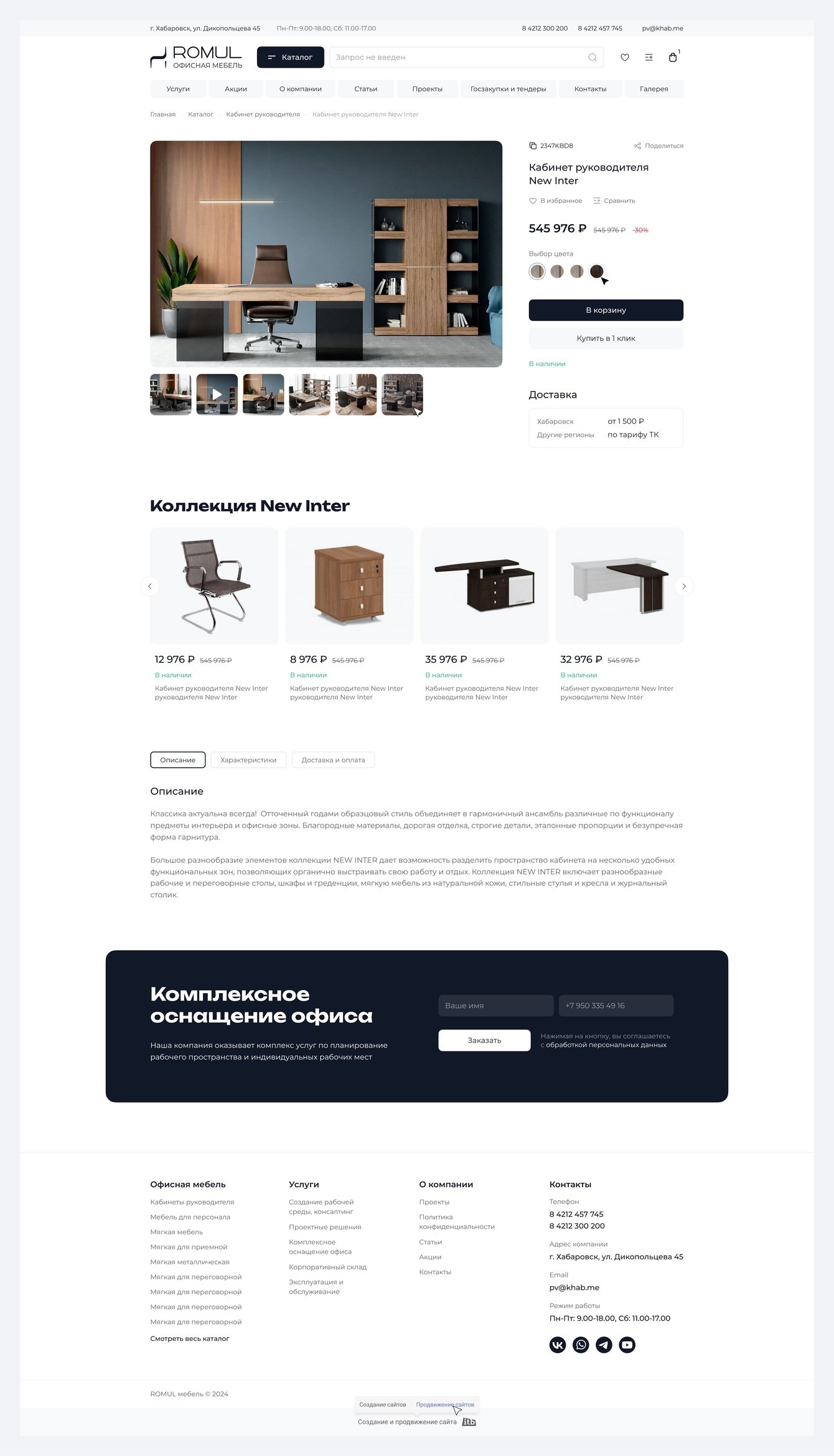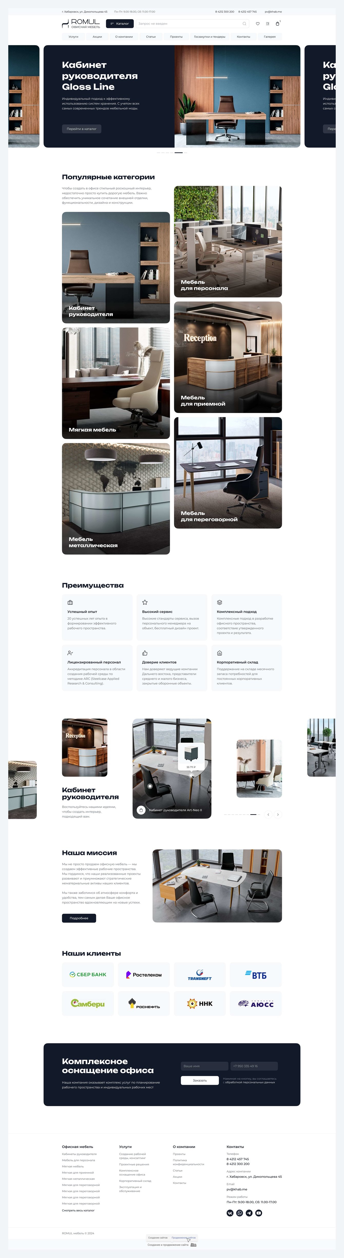 Romul — дистрибьютор из Хабаровска, который продает офисную мебель и занимается проектированием рабочих пространств.