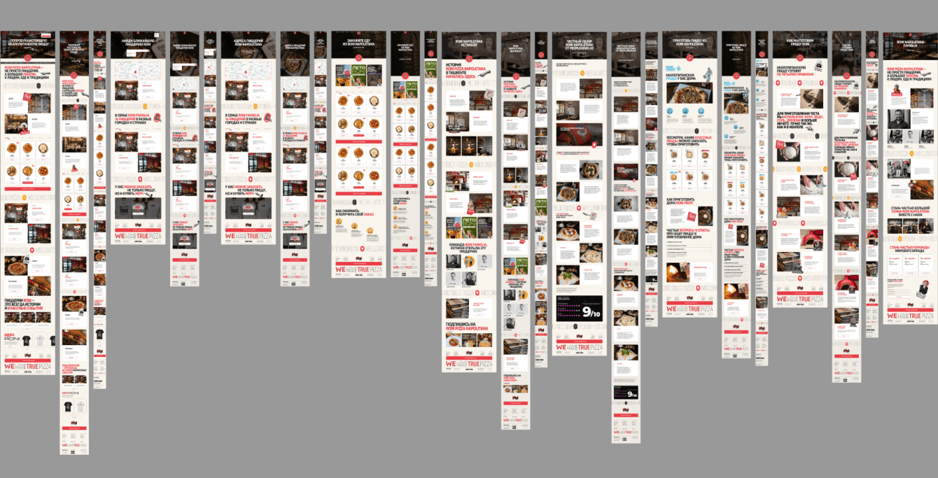 На главной разместили самую важную информацию и каталог. Создали страницы об истории компании, страницу с партнёрскими предложениями, разместили информацию о тонкостях приготовления пиццы в ресторанах.Создали подробные и понятные карточки товаров, упростили оформление заказа и адаптировали всё это под разные разрешения экранов.
