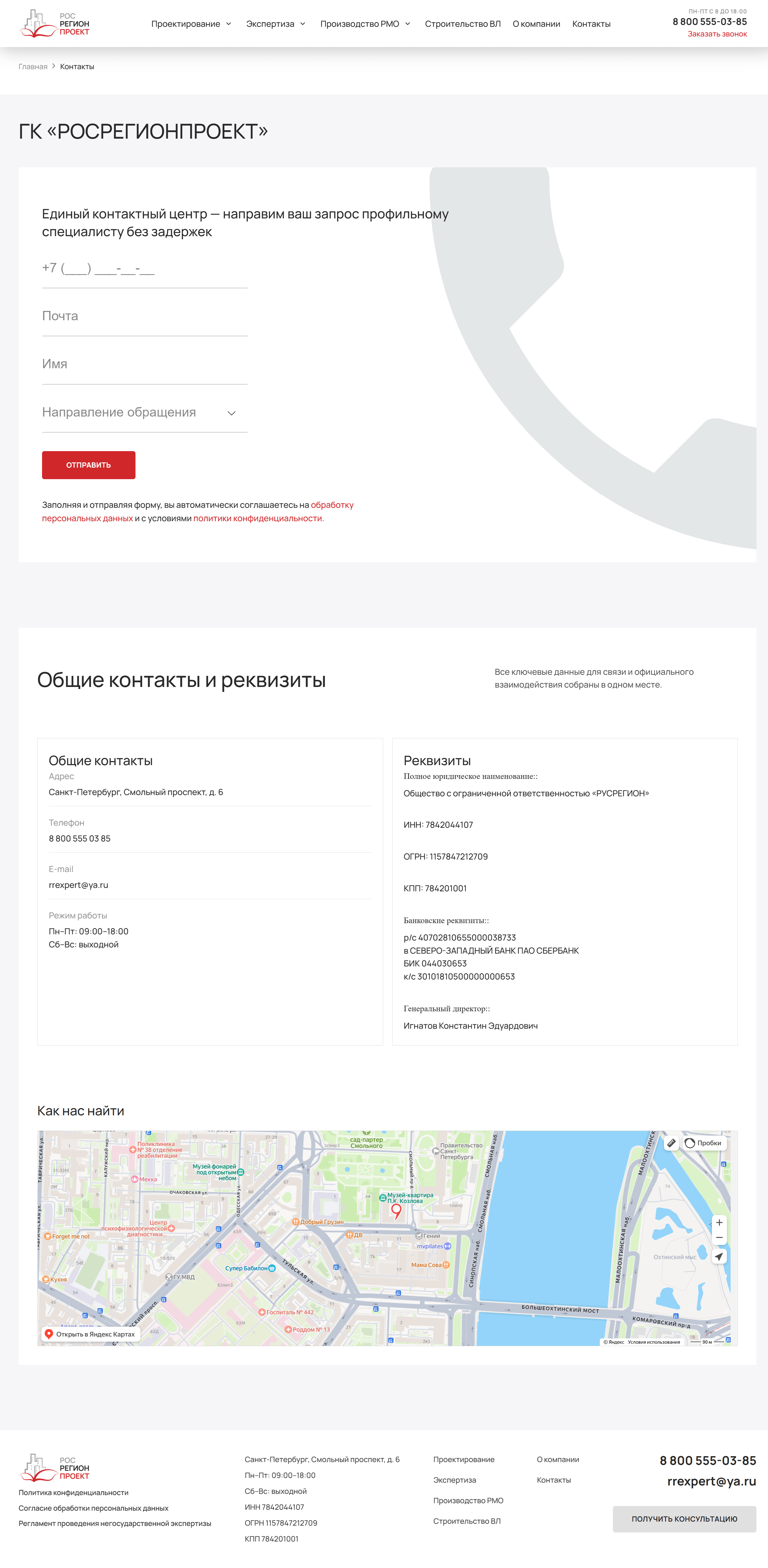 Основная цель — чётко разделить направления деятельности и упростить навигацию для пользователя. Для этого каждое направление было выделено своей цветовой логикой, что позволило быстро ориентироваться внутри сайта.