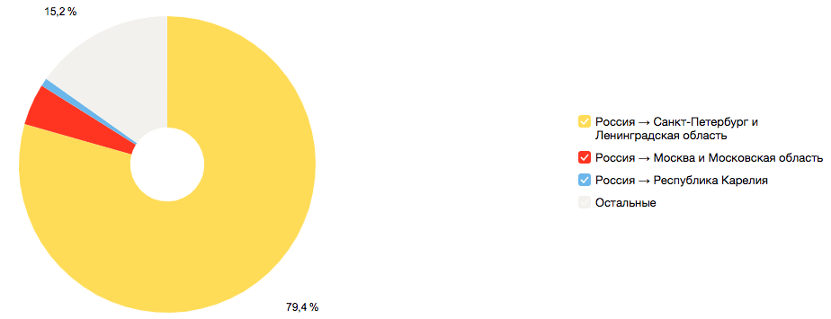При этом мы сделали акцент на продвижении по Санкт-Петербургу, где располагаются магазины ROSSI Grand. Более 79% пользователей удалось провести именно с этого региона.