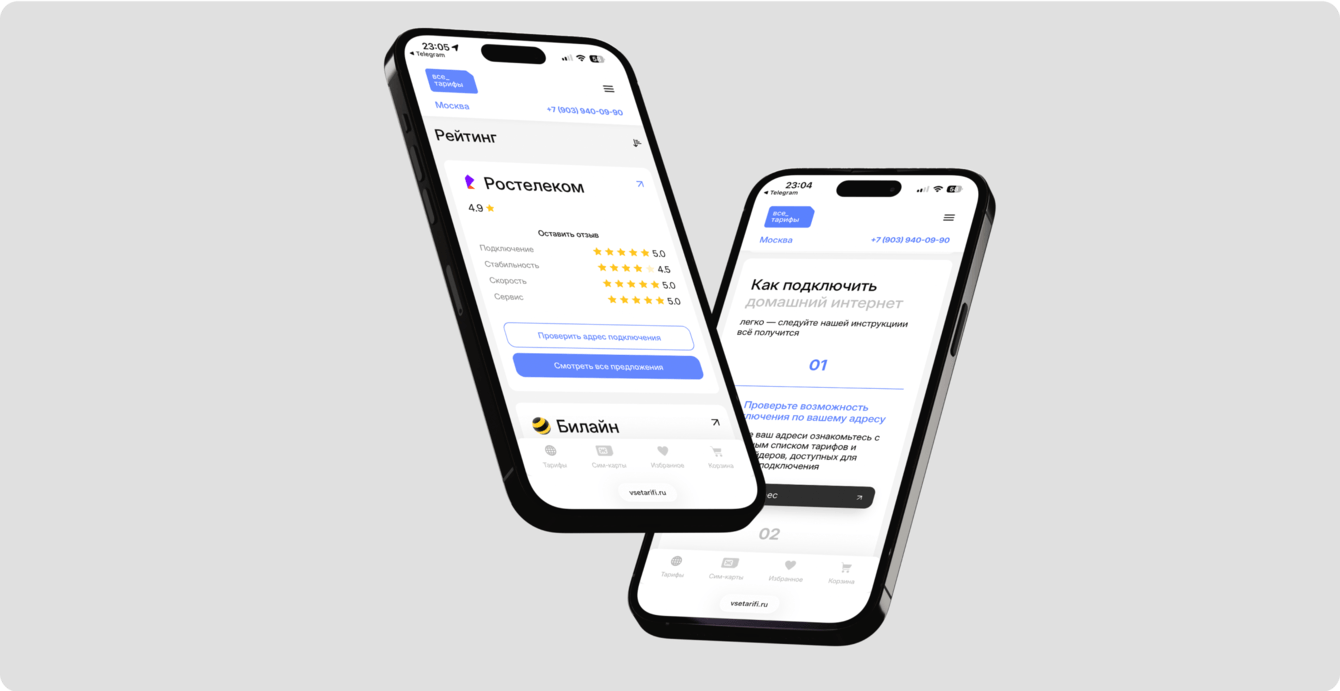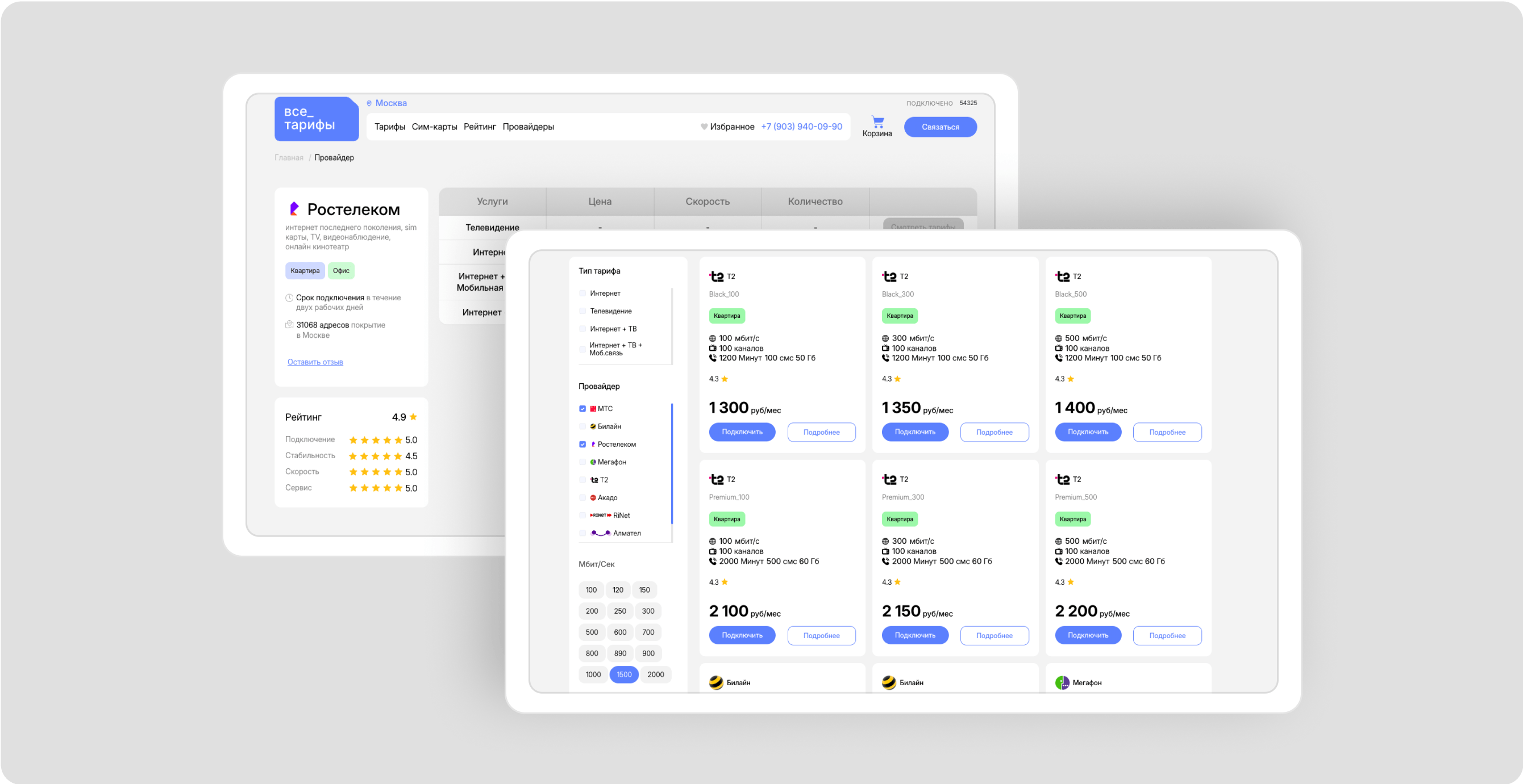 Фильтрация: Разработаны удобные фильтры по ключевым запросам пользователей. Теперь пользователь может быстро найти нужный тариф.