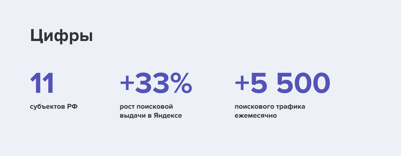 Точечно вручную мы оптимизировали заголовки и поправили микроразметку на самых частотных страницах, выявили дополнительный спрос и создали посадочные страницы.