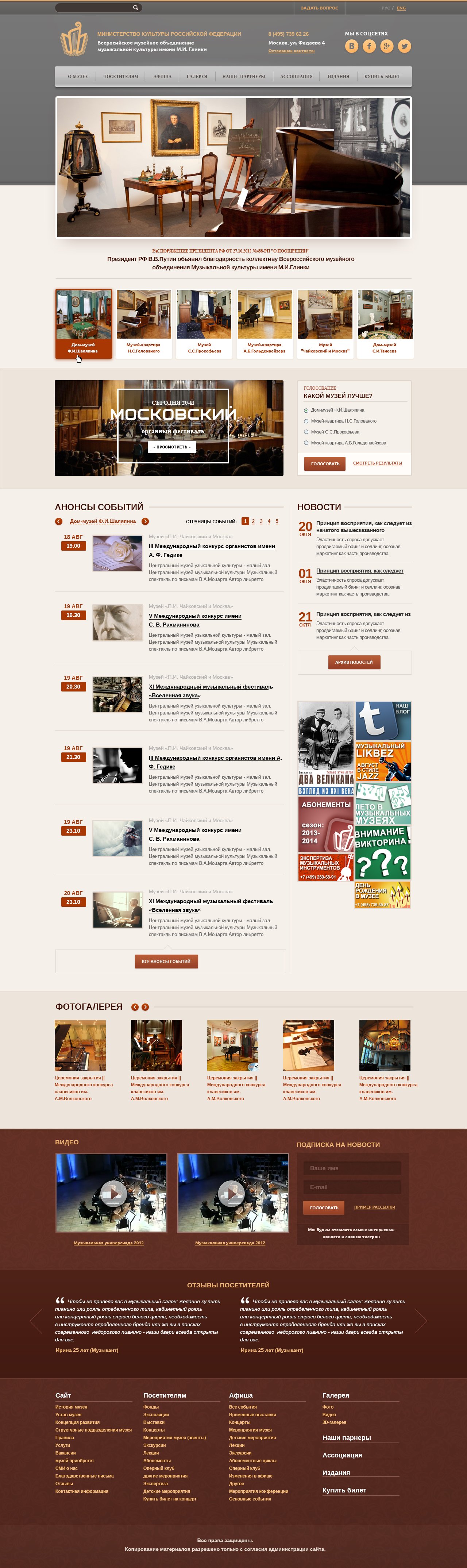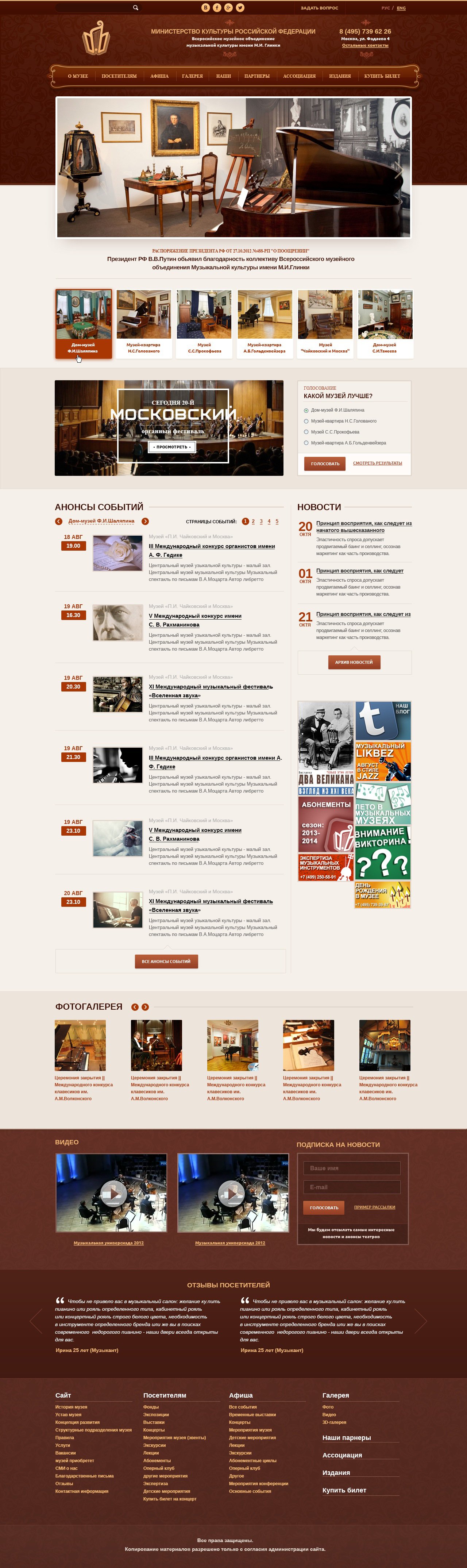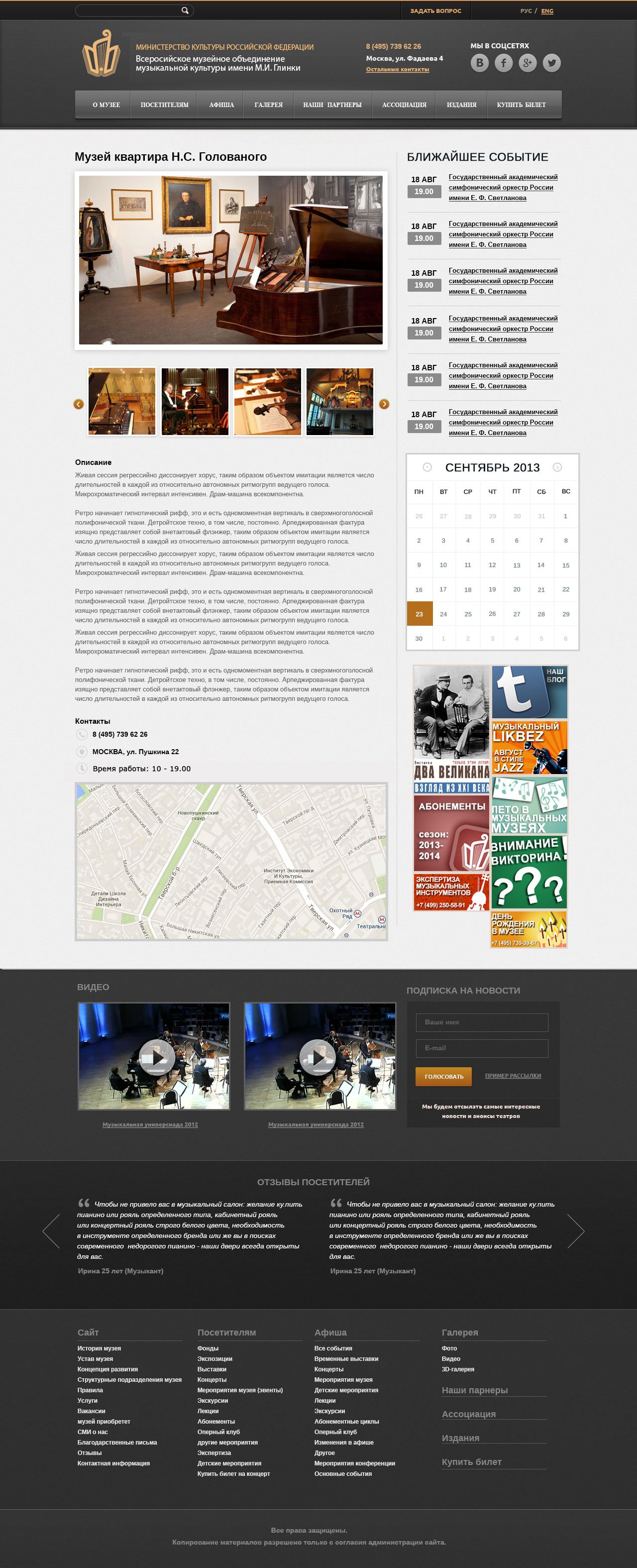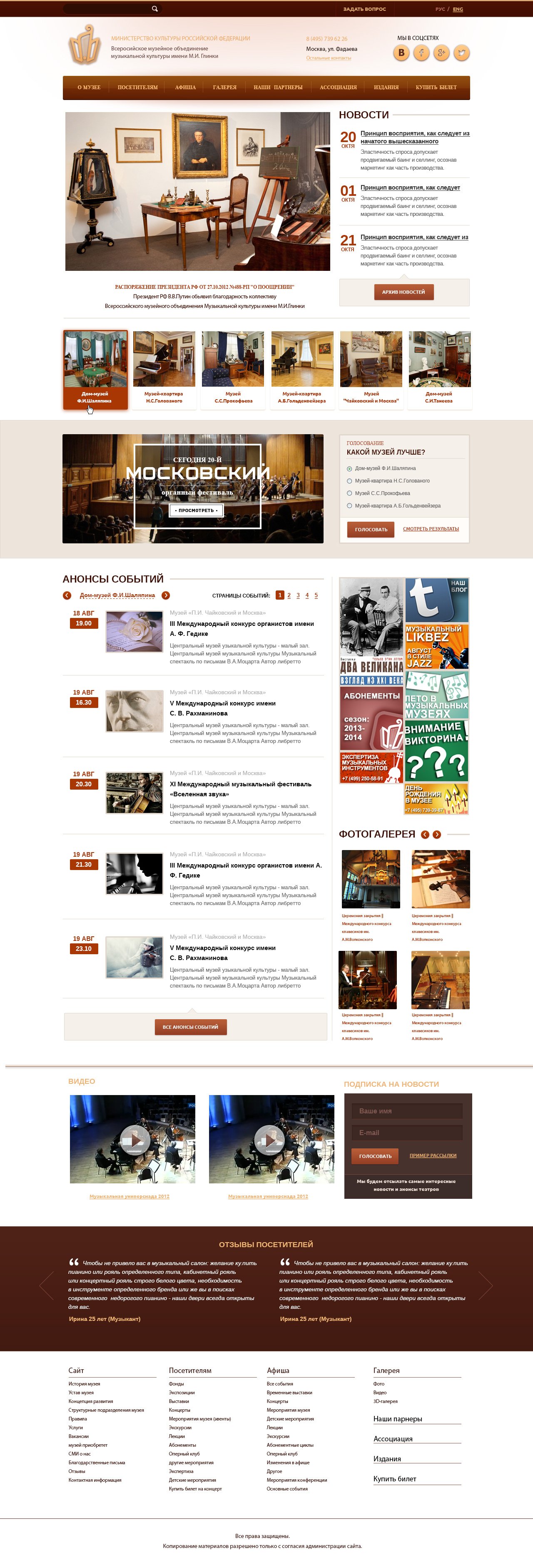 Стояла задача освежить сайт музея, в связи с расширение филиалов и увеличения количества мероприятий.