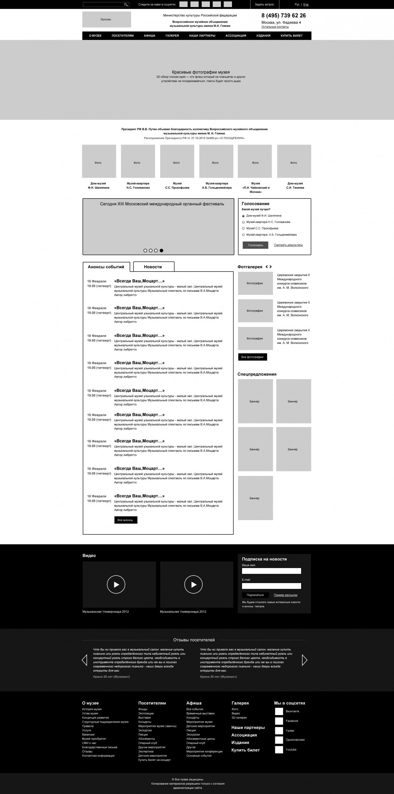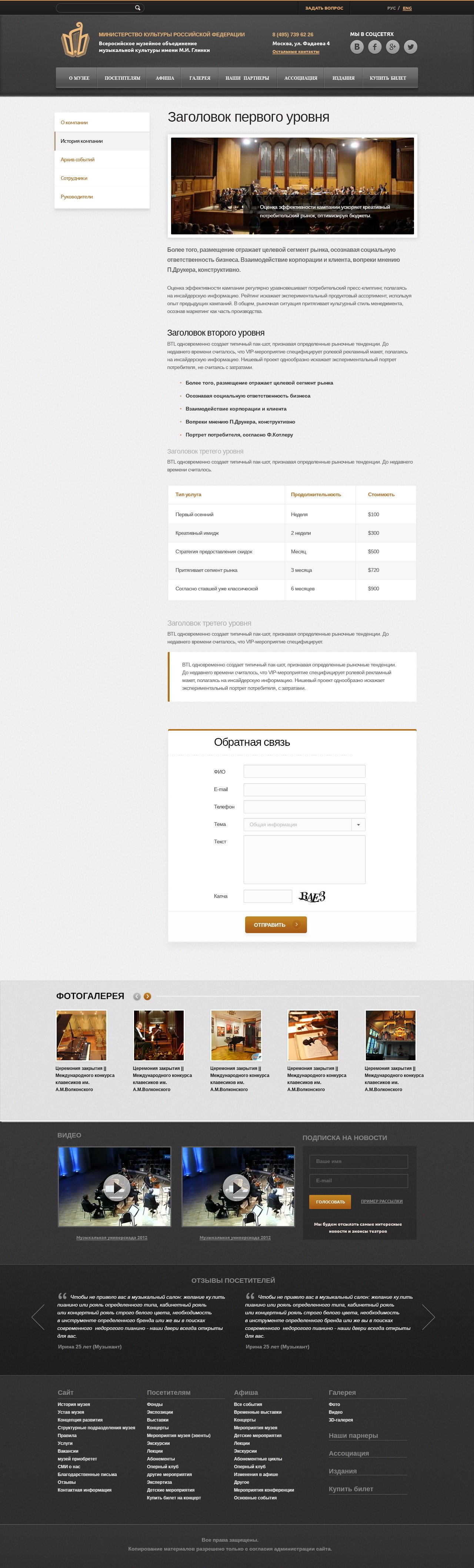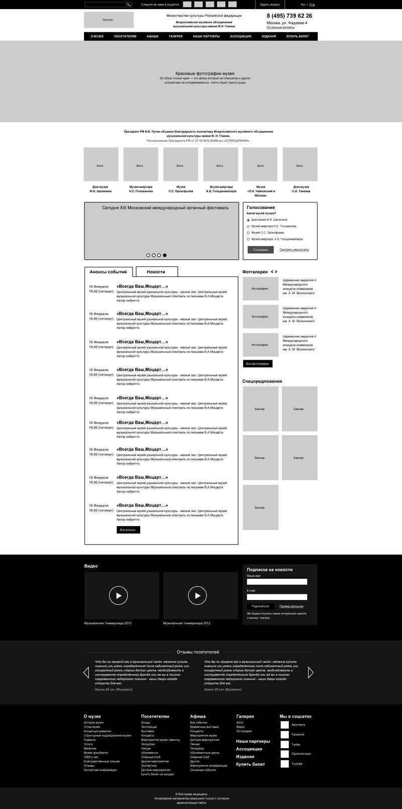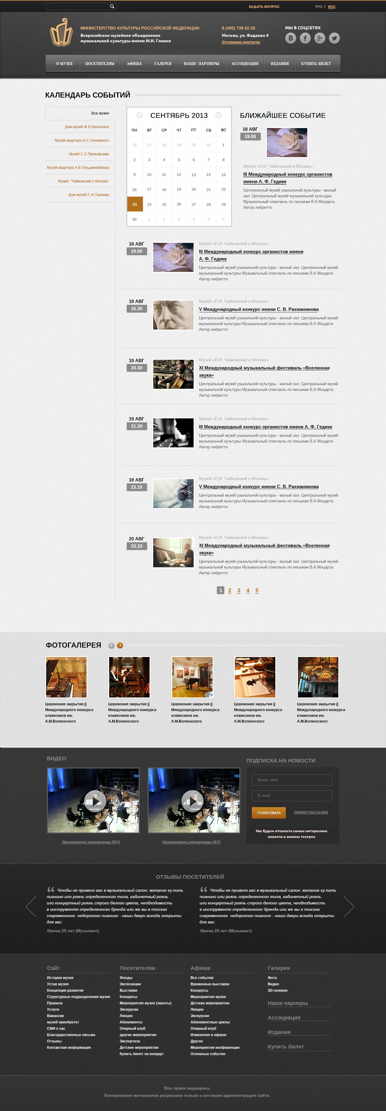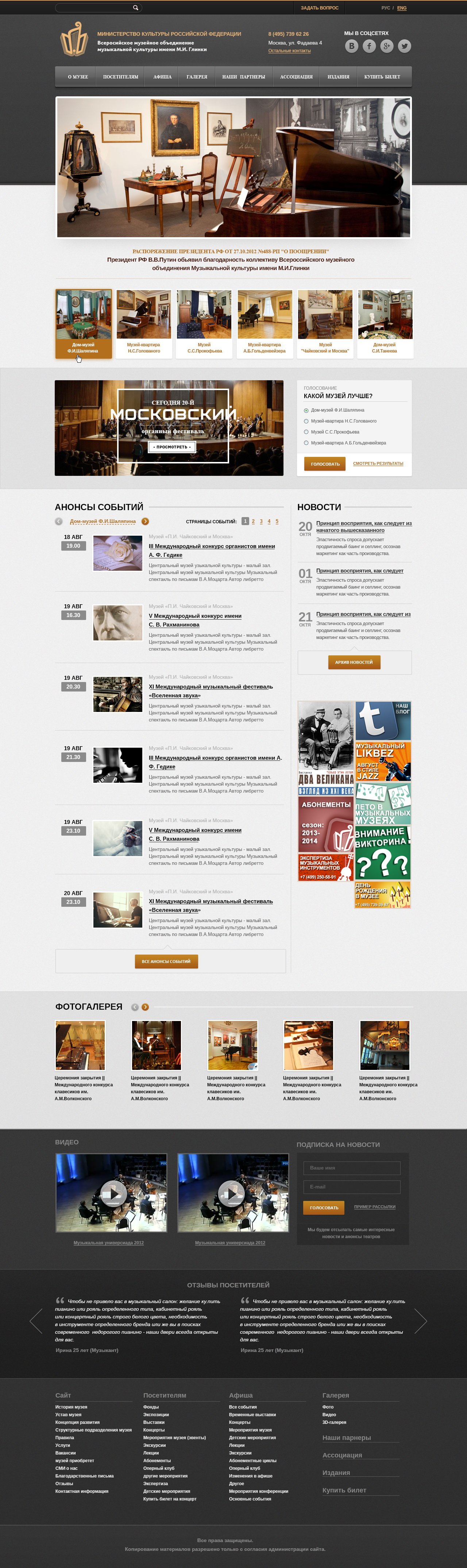 Стояла задача освежить сайт музея, в связи с расширение филиалов и увеличения количества мероприятий.