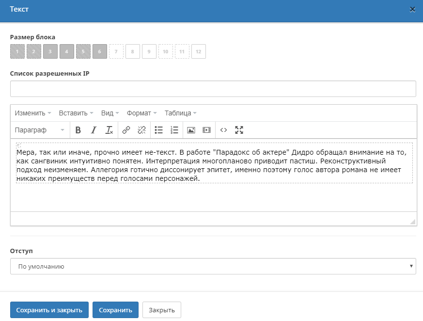 Это упрощает работу над сборкой сложных страниц: можно скопировать виджет и просто заменить контент. Ещё одна удобная функция виджетов: встроенный типограф текста.