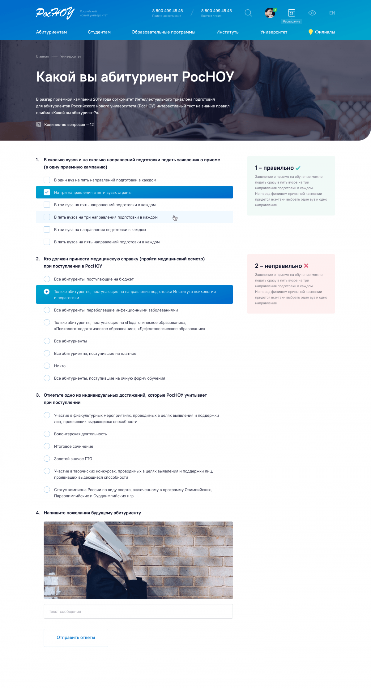 Также были важны сроки: первая версия портала должна быть запущена к началу лета, чтобы у абитуриентов был доступ ко всей необходимой информации.