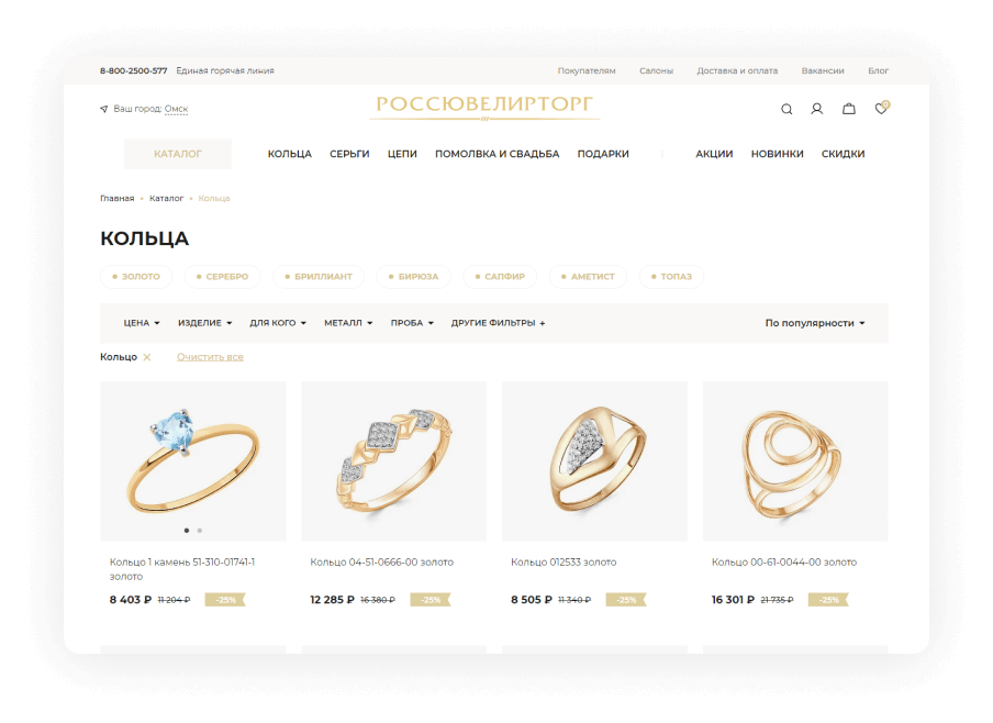 Мы сделали у сайта привлекательный дизайн, соответствующий стилю и эстетике ювелирных изделий, с использованием красивых изображений, элегантных цветов и высококачественного контента.