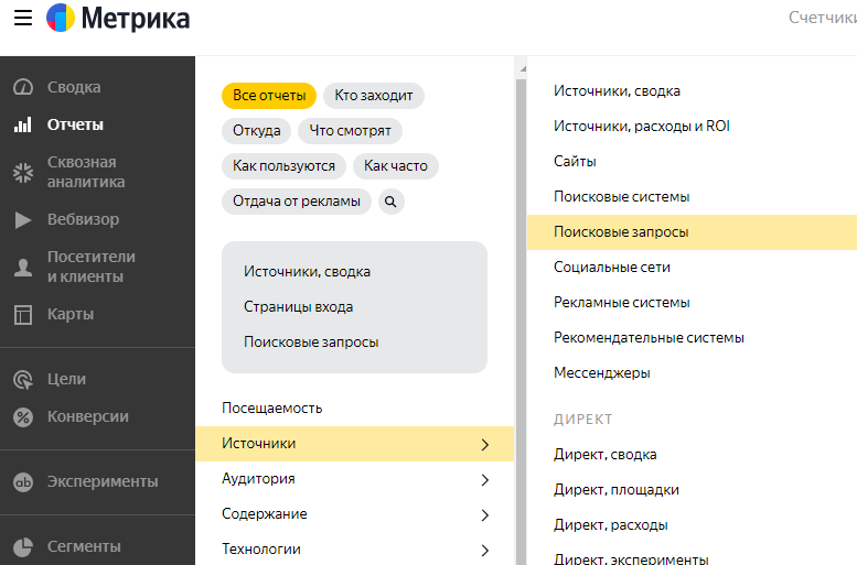 У проектов с историей есть ключевые фразы по которым были осуществлены переходы на сайт. Для этого достаточно, чтобы была установлена Яндекс.Метрика.