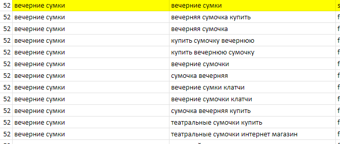 После выставления настроек получается список ключевых фраз, которые можно выгрузить в таблицу.
